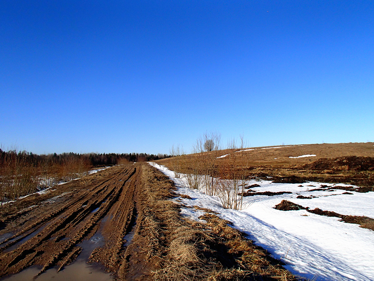Обратно к урочищу, где поля с трактором были, дорога подкисла, но еще держалась, хоть и стала грязноватой.