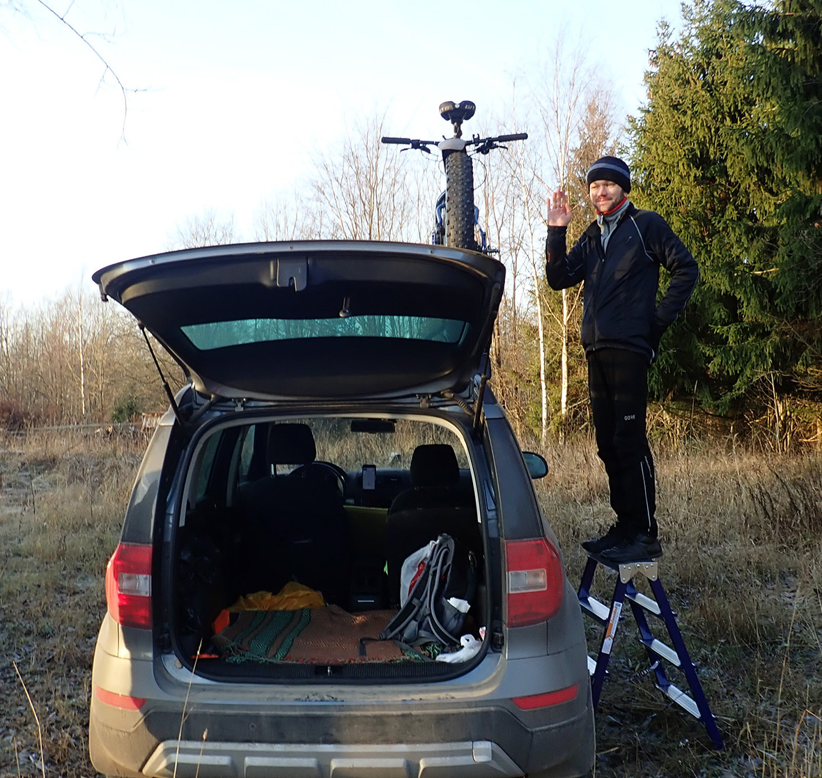 Вот тебе для настроения фото мсье Грызликова, осваивающего постановку фэта на багажник :D