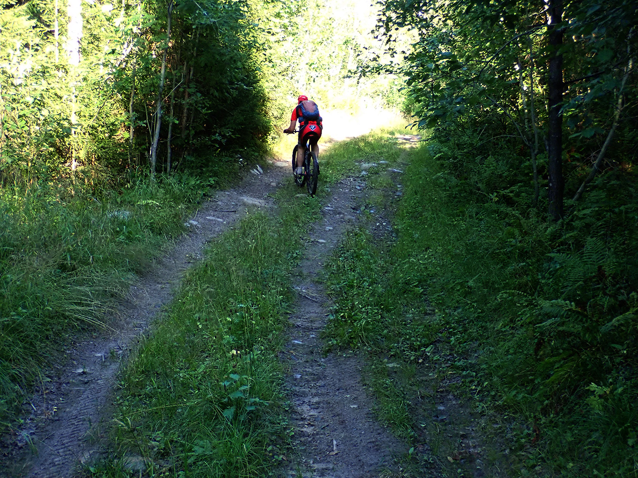 каменистые извилистые лесные пунктиры, не ковырялки, но не быстрые, потому что надо быть предельно внимательным и сцепление с рулем должно быть полным ибо убраться где-нибудь на спуске, который ухает в травянистых коллеях с камешками