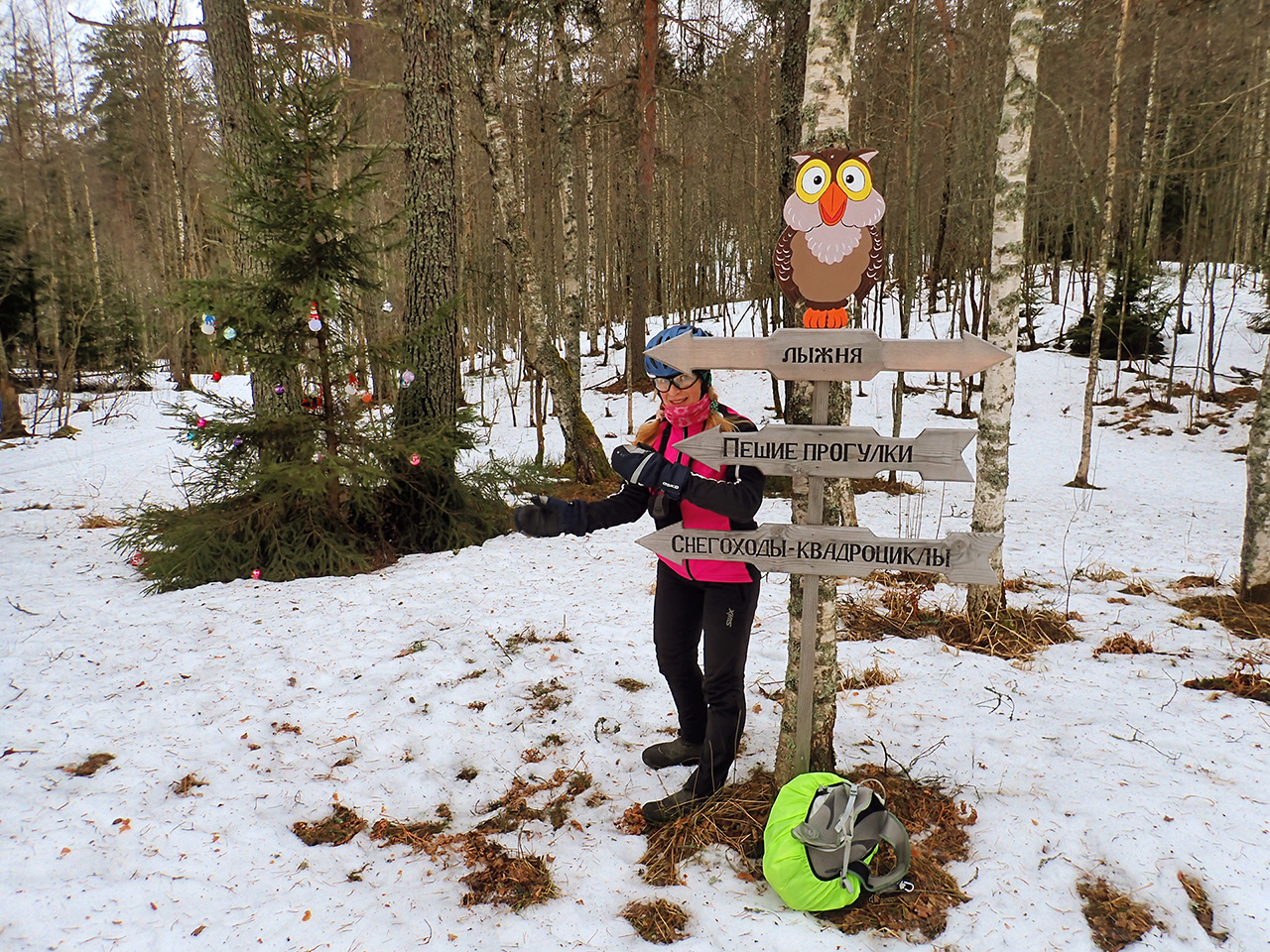по снегоходке проехать, пока можно было, снега то до этого было совсем мало, от 0-5 см, а чем дальше в лес, тем толще партизаны, в смысле снега больше и потому снегоходка уже не осевшая-заледеневшая, снег см20 (там дальше аномальная снежная зона в сторону зелика, зимой там так часто бывает и снег еще до конеца апреля держится), сначала не держал элитную подружку на найнере, а потом и легкую Шубку на фэте