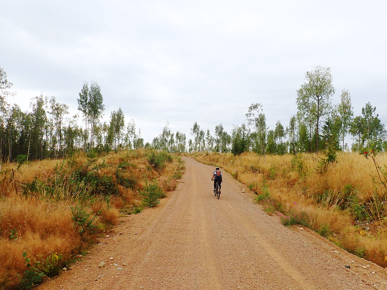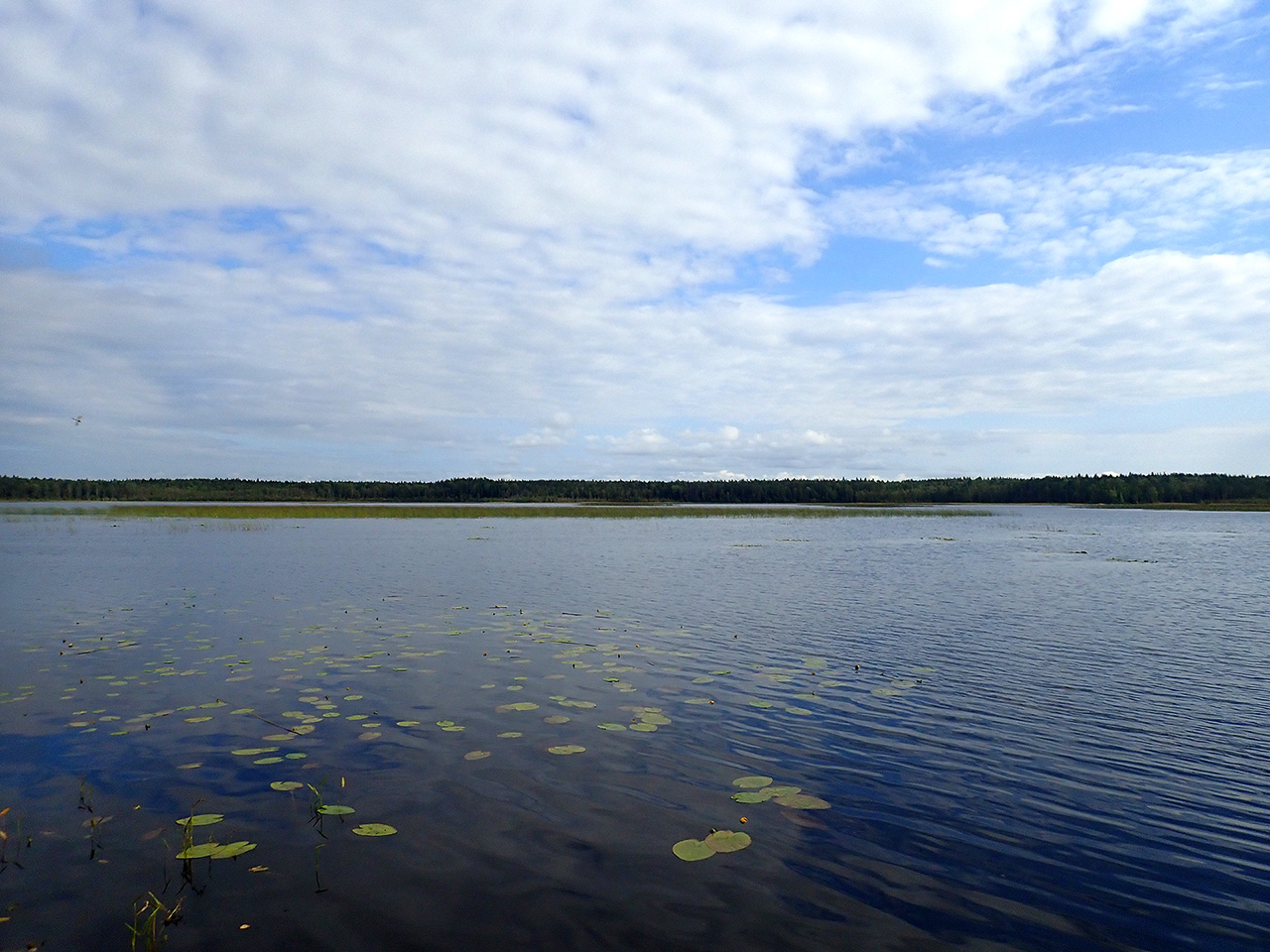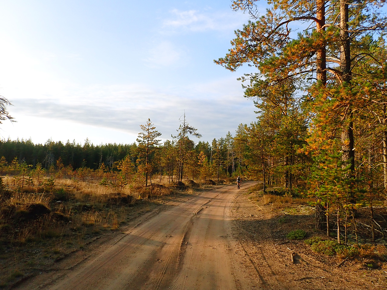 Погода на день катания обещалась быть томной, тобишь облачность с прояснениями и солнце уже во второй половине дня, что было весьма на руку, так как очень высокая влажность даже при утренних +14С (стартовали в 9 утра) ощущалась не очень приятно, а днем на +20С и вовсе не комфортно для катания по пересеченке. Так что лишние теплые вещи были до вечера убраны в рюкзаки. К полудню влажность убралась наконец вон и лично мне задышалось легко и свободно. Ехать налегке по шикарным каменистым лесным дорогам, взлетая то вверх, то вниз, беспрестанно восхищаясь удивительно красивому и постоянно меняющемуся ландшафту было просто в радость. Тут тебе и красивейшие боры и высокие печальные ели, где то березки и рябинки где то вырубки и осинки, а где то скалы и глазастые озерИнки, да прячущиеся моховые болотные низинки