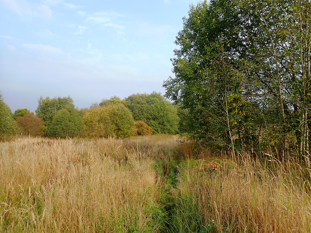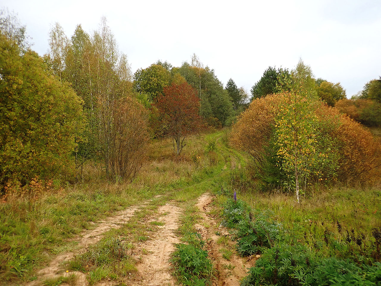 дорога в заброшенную деревню, еще вполне проезжая, а дальше полноценно утоптанная кабанятиной, у которой там мекка просто, от яблони до яблоней через км 3-4 у них хайвей, ехать можно,на подвесе интересно и даже не сложно 8-) похожую экс однозначную дорогу, ныне кабанью штрассе мы одолевали под вышним волочком позапрошлой осенью, там км полтора показались ну очень долгими :) тут же ехалось гораздо веселей даже в самых с виду мутных участках, почва почти везде твердая и ровная, хотя местами было слегка напряжно, там где в низинках суглинок растоптанный копытами был, но таких участков было всего ничего, главное ж ехать на интерес, как никак тропа и дикий лес :D конечно можно было проехать как раньше другой, объездной дорогой, но тогда бы ничего не увидела :)