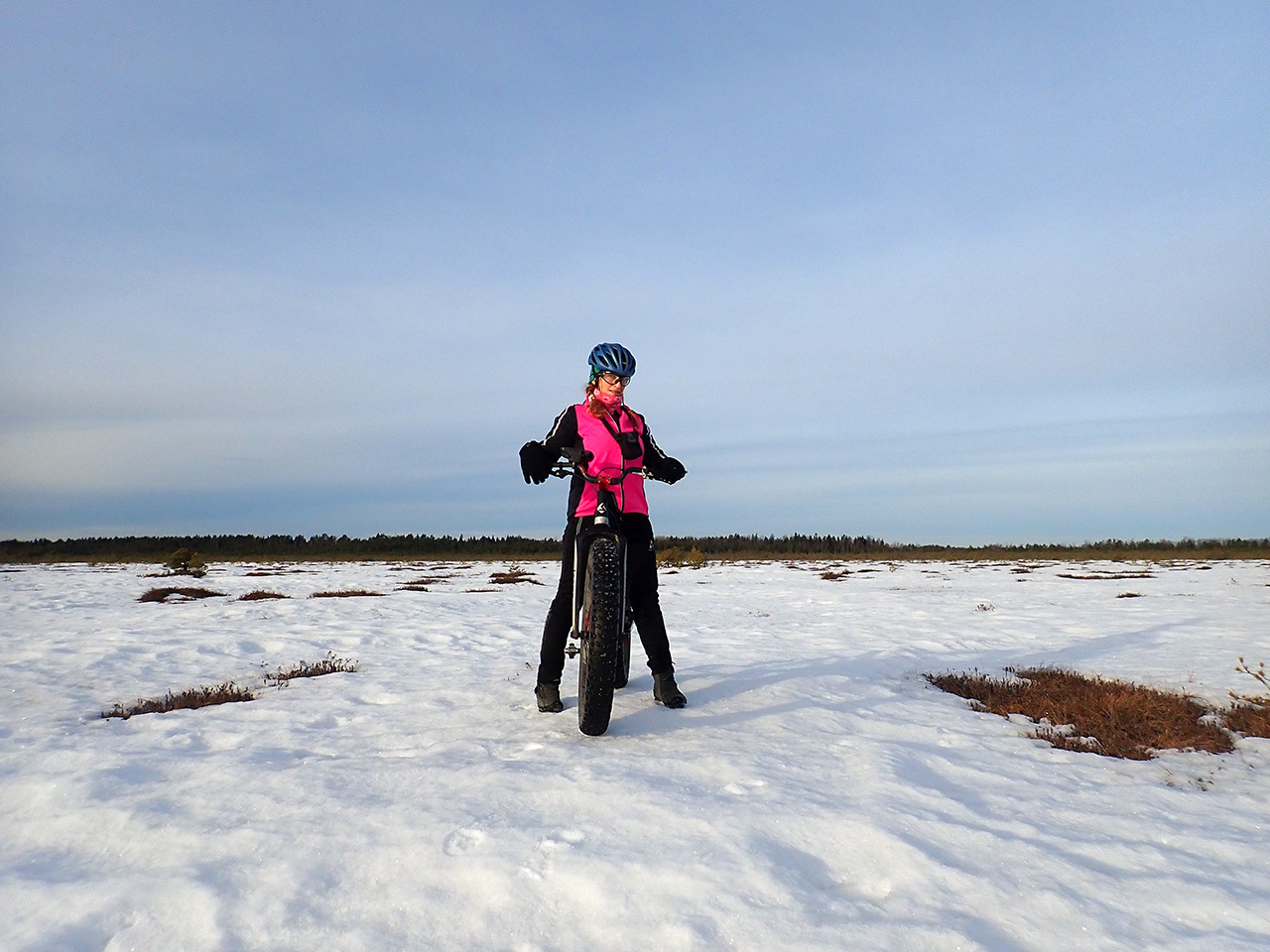 Последние 200 метров до выхода слезла и прошла, там наст в тени деревьев держал, но ехать было невозможно. Напоследок еще подкрепилась на клюквенной токе-кочке)