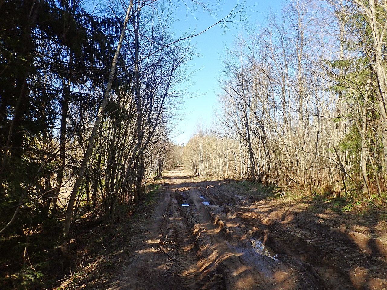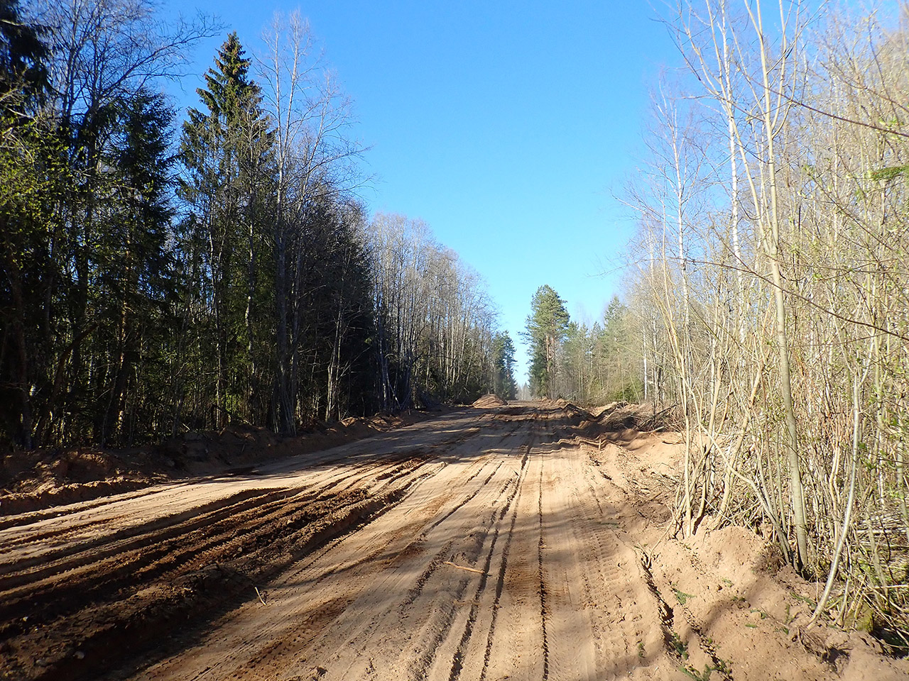 В первой части маршрута пересечение такого участка неудобств не доставило. Разве что масштабы вырубок поражали, лес валили даже реликтовый (во второй части тоже самое) Самосвалов почти не было, а если иногда и проезжали, то даже пыль не поднимали, ветер выдул уже весь песок с дороги, да и покрытие ровное было. Так что км 2-3 прошло безболезненно. Вот во второй части один раз выезд с лесной дороги оказался перекопан, а за ним уже шла песочная дорога для самосвалов км на два, ну а дальше я уже ниже написала в комментах. По факту же где ходят потоком самосвалы испорчены (выбиты) даже грейдеры со стороны тверской и новгородской, планировать там маршруты точно не стоит. Лес штабелями, вобщем грустная картина для красивых боровых мест