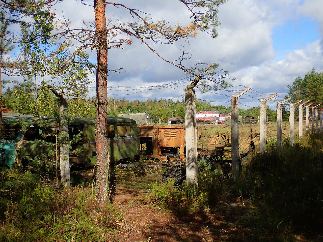 начало колючего заграждения, тянущегося по всему периметру, не объехать ни обойти.