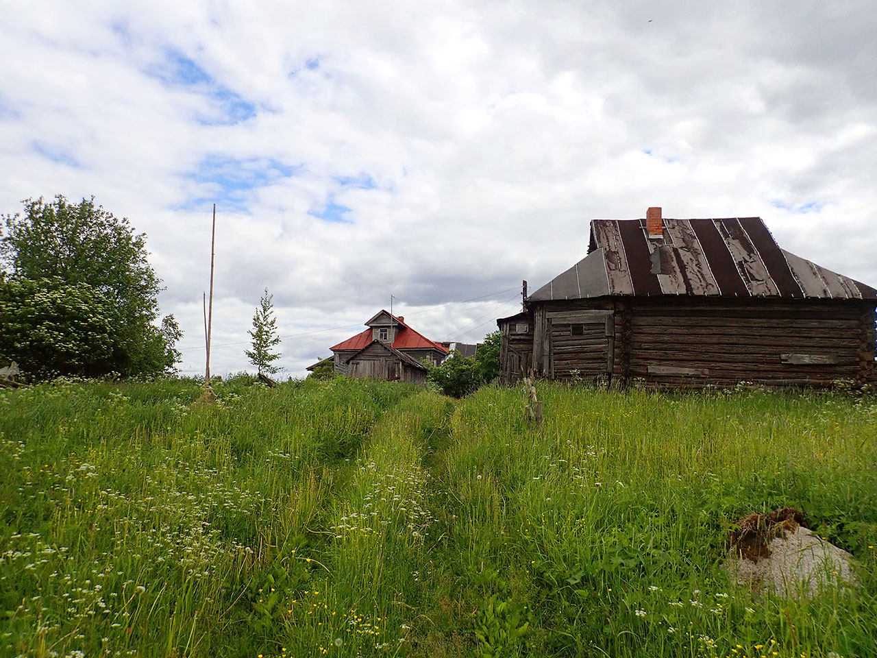 после моста из за травы даже сразу домов не видно, едешь по читающейся еще колее в траве, у домов она уже хорошо читается :)