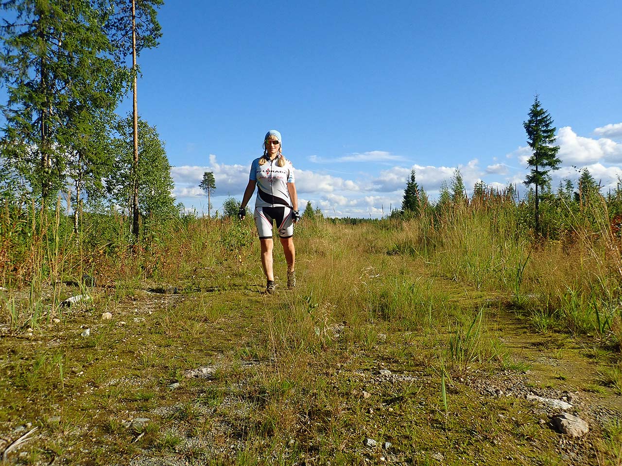 Но что удивительно, не было комаров, даже в низинках на подтопленных лесных дорогах. Там пару раз пришлось спешиваться, чтоб по обочинке их преодолеть. А в середине маршрута еще на одной очень глухой дороге, где по закраинам и вовсе можно было ехать, пролетел один очень одинокий слепень.