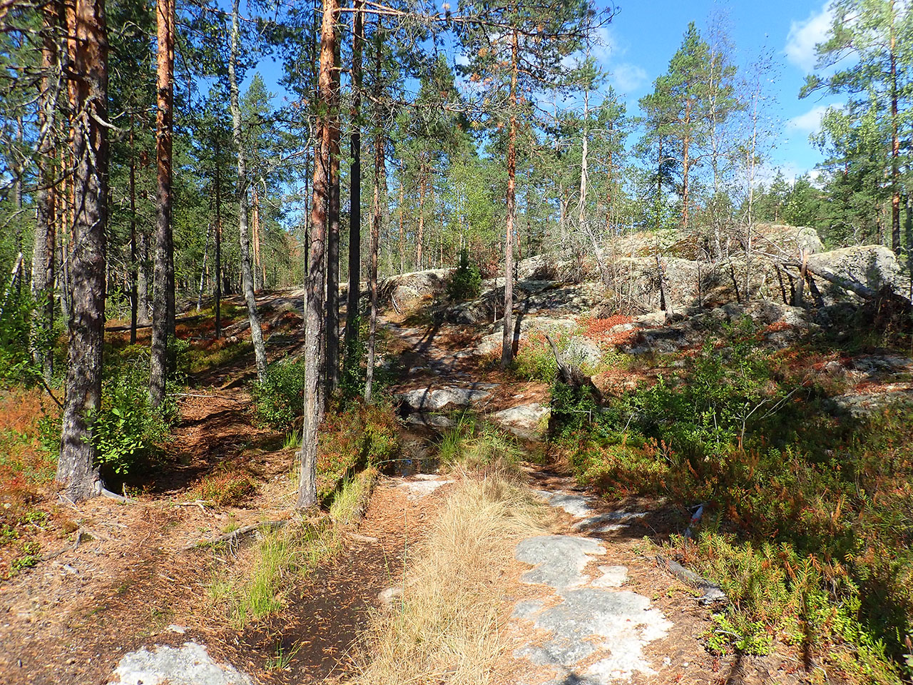 вдаль просто захватывающие! Я не фанат северных красот, но когда чувствуешь места Силы, не грех и приобщиться :) Полазила там минут сорок по каменным лбам и ступеням. Дорога к ним тоже была каменная, идеальная для подвеса. На нем с правильными ходами ездить можно просто по фану. Очень жалела, что не успела поставить и затестить там новую вилку. Там бы она была весьма кстати. И еще очень жаль, что на фото не передать всю ландшафтную красоту , надо было видео конечно поснимать, но было лень.