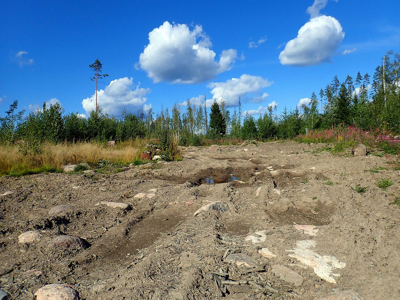 далеко не везде, а только где были дожди, по большей части дальше везде было сухо. Но вот как назло, ехать по очень изюмистой части трека с таким грузом было плохим решением. А сбросить баласт у меня силы воли не хватало :) И км 20 по жесткой пересеченке состоящей из