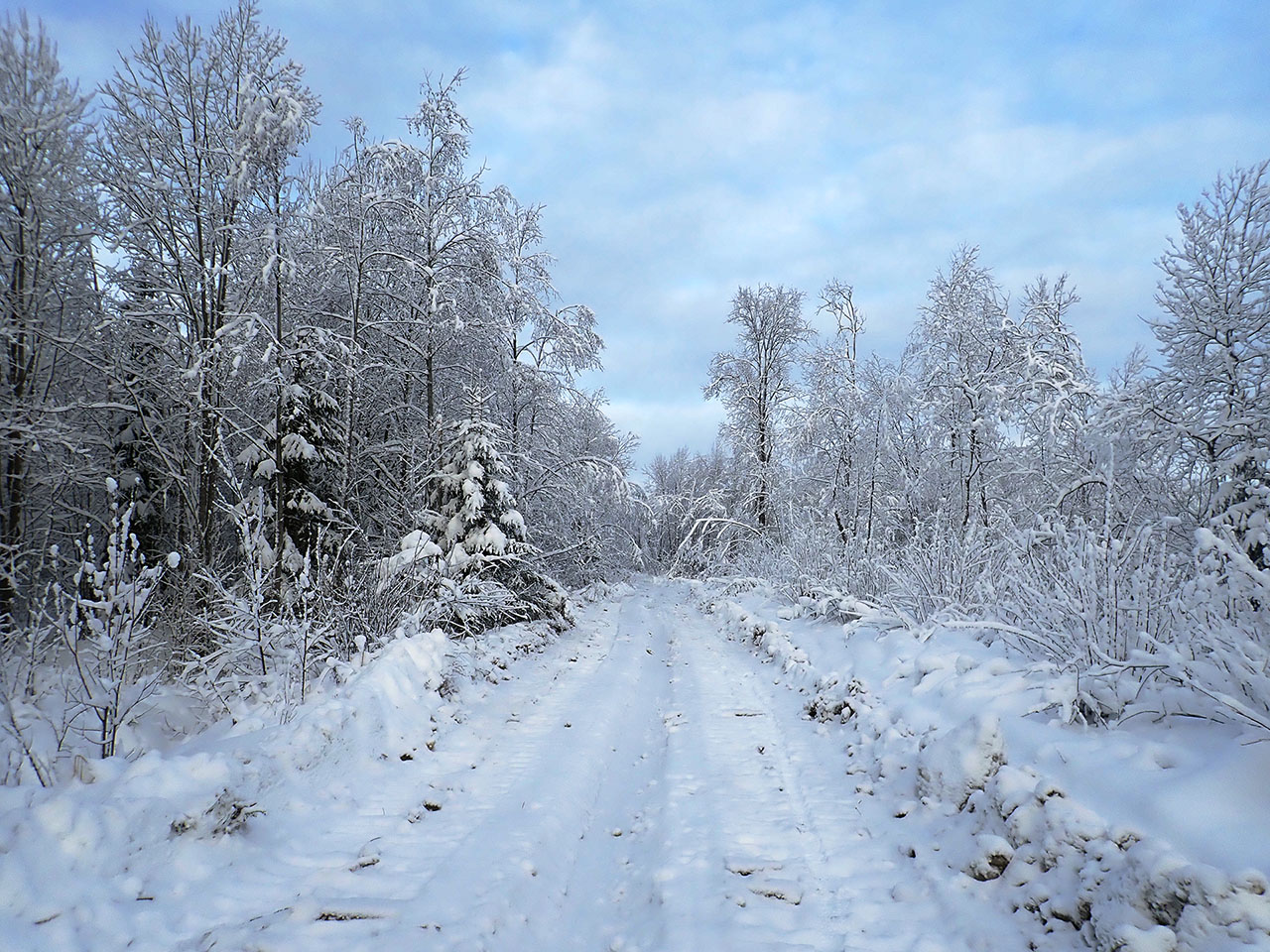 с другой стороны. Там где прошел давно лесовоз, выпал не один слой снега, торты в неровных коллеях и свежачок сверху. Впечатления лучше