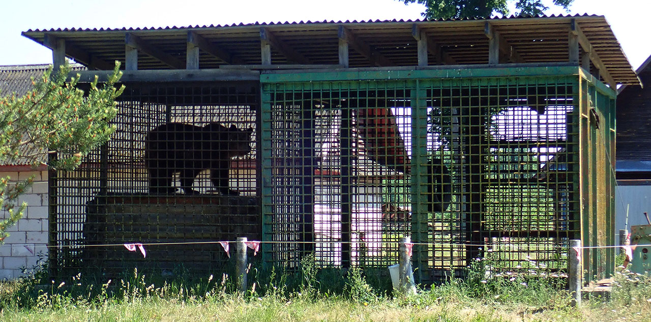 была река Кобона, обмелевшая настолько, что ее можно было перейти пешком не замочив ног и огромная клетка с медведем.