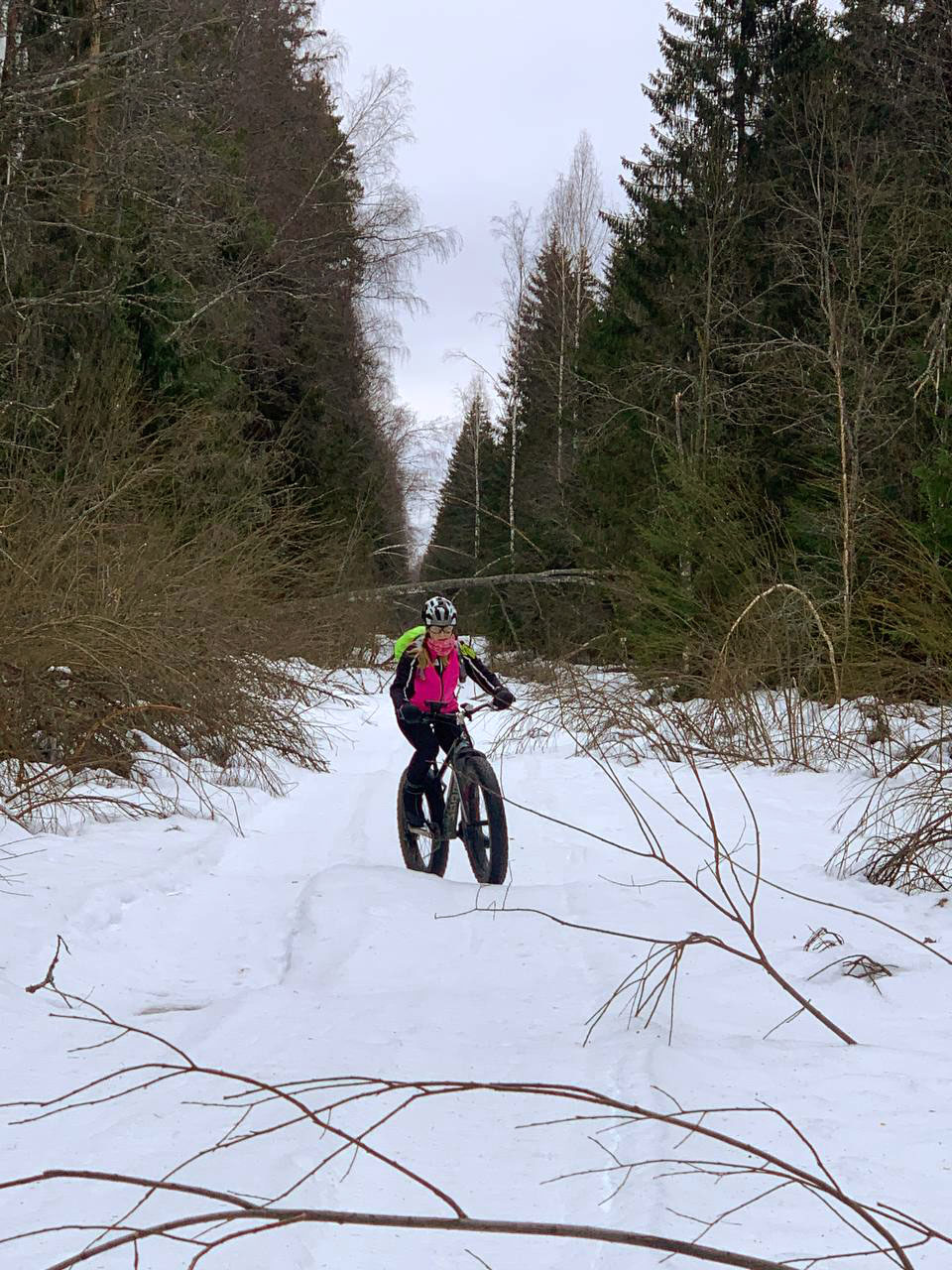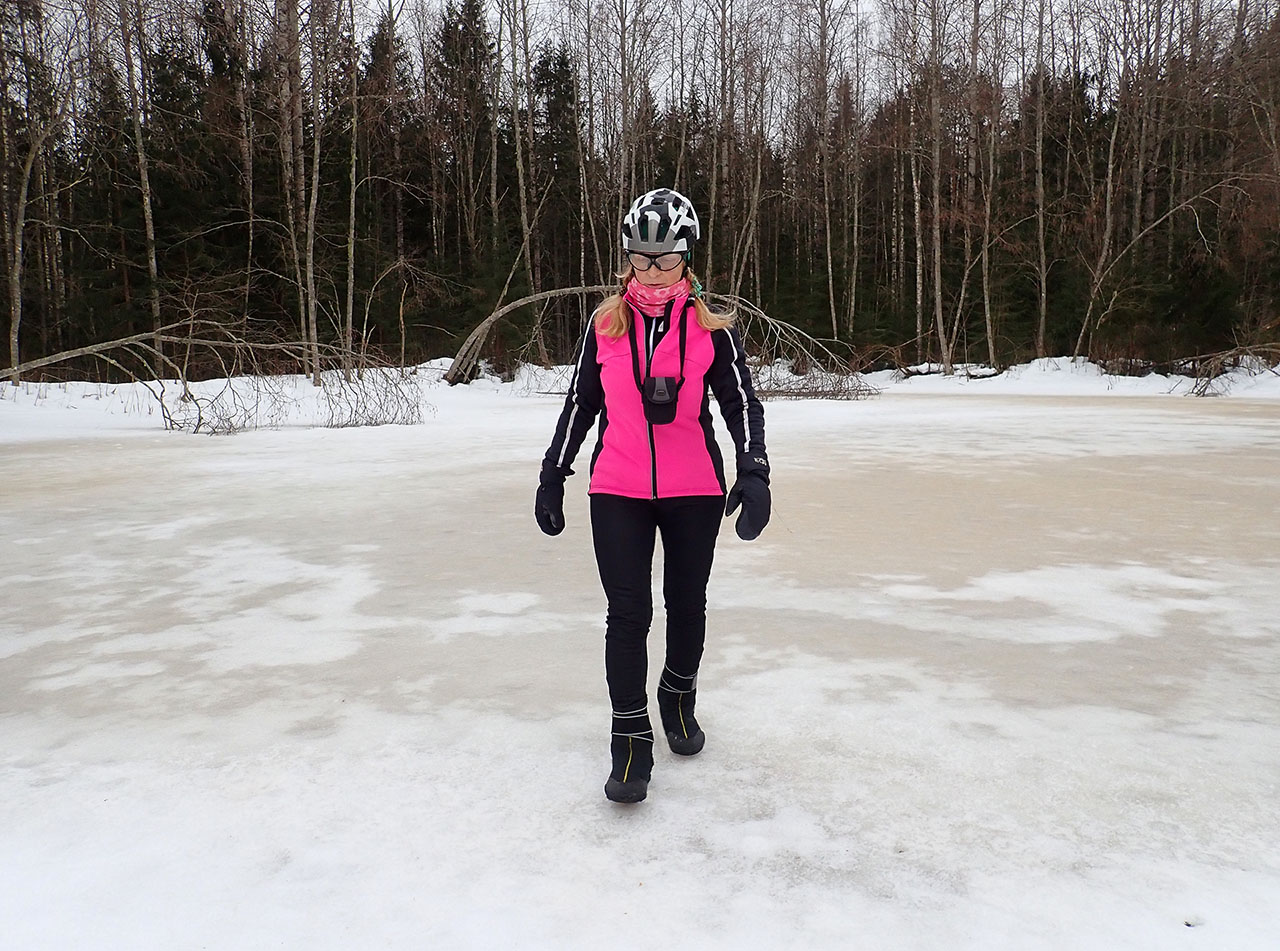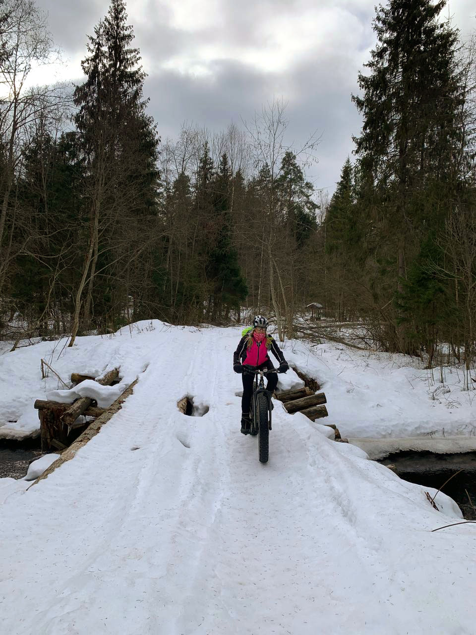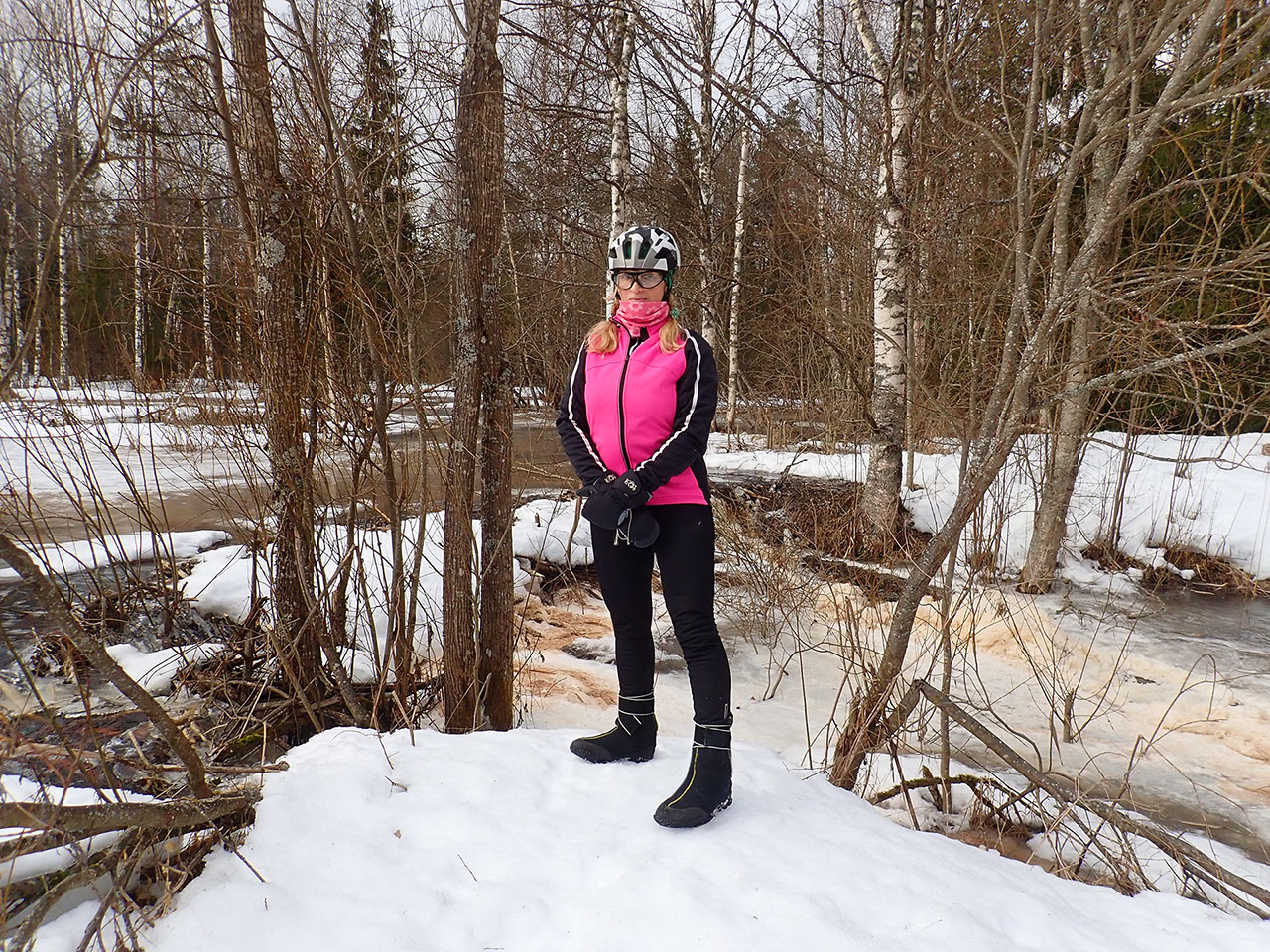 Заранее было понятно, что езда к болоту, там где есть ручьи и каналы из за аномального февраля могут дать текуху. В поездке днем раньше мы на болотце наблюдали такое явление и товарищи, катавшиеся недалече от тех мест фотки с болота прислали, полные живой воды и промоин. Так что ехать навылет губу заранее не катали, в запасе была закольцовка. И как показала в дальнейшем суровая реальность, приболотная территория к озеру уже "дышала". Сначала в лесу появились колеи с еще крепким прозрачным льдом, потом с желтым, а потоми и вовсе вода показалась впереди. Испытывать судьбу и рубиться в болото желания не было, слабоумие и отвага все же должны быть просчитаны