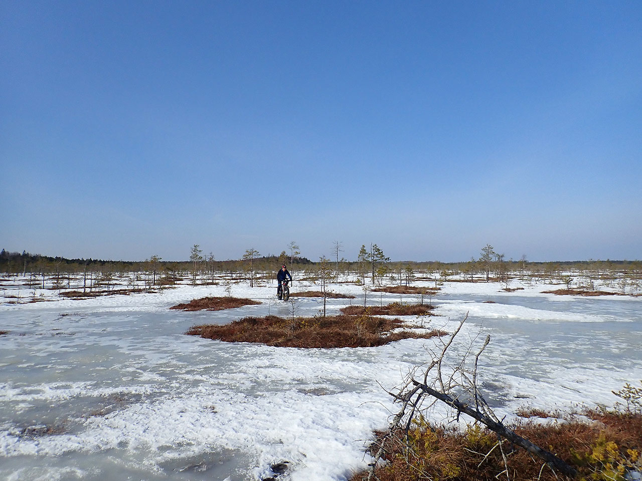 Конечно выбранное место это не Зеленецкие Мхи, по которым четыре раза крестовиной удалось прокатиться и даже не Сокольи, что чуток поодаль, возле Погостья, там за два раза плотно объехали. Но на эпическое смысла замахиваться не было во всех смыслах. Нужна была возможность свалить вовремя на твердое покрытие к удобной элке, когда дороги исчезают, а на большее уже планы будут, когда ездить можно наконец будет без сопровождения простудных вирусов и не в этом сезоне. Кстати вспомнилось бегство с Зеленецких Мхов viewtopic.php?f=2&t=106 2018-03-29 Валя-оз.Щало-бол.Зеленецкие Мхи-р.Задневка-бол.Ягодницкое-Валя (ссылка на альбом рабочая, при переезде Яндекс альбомов на Диск не побилась