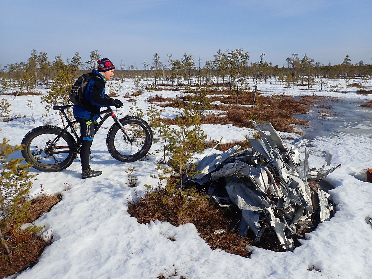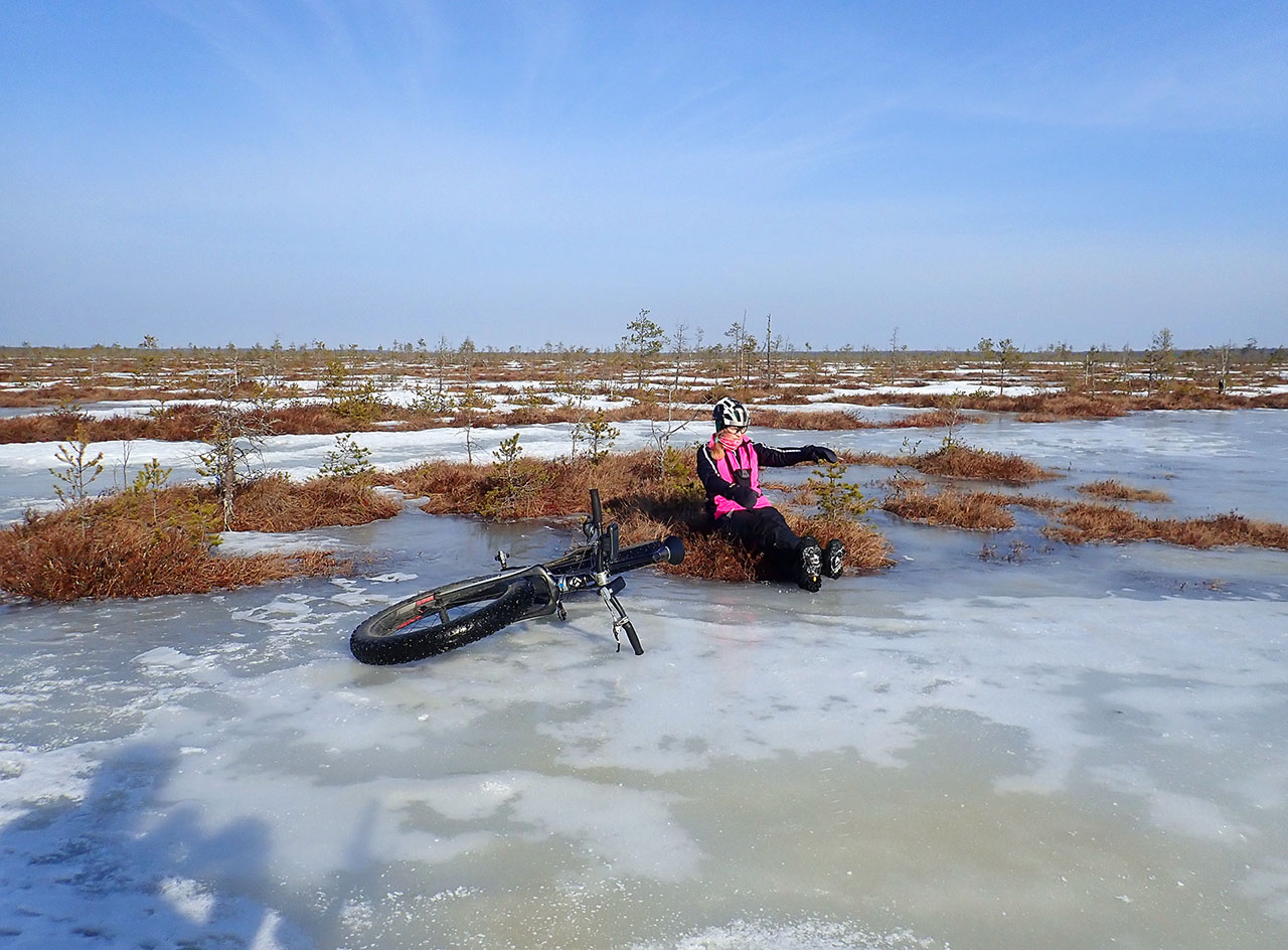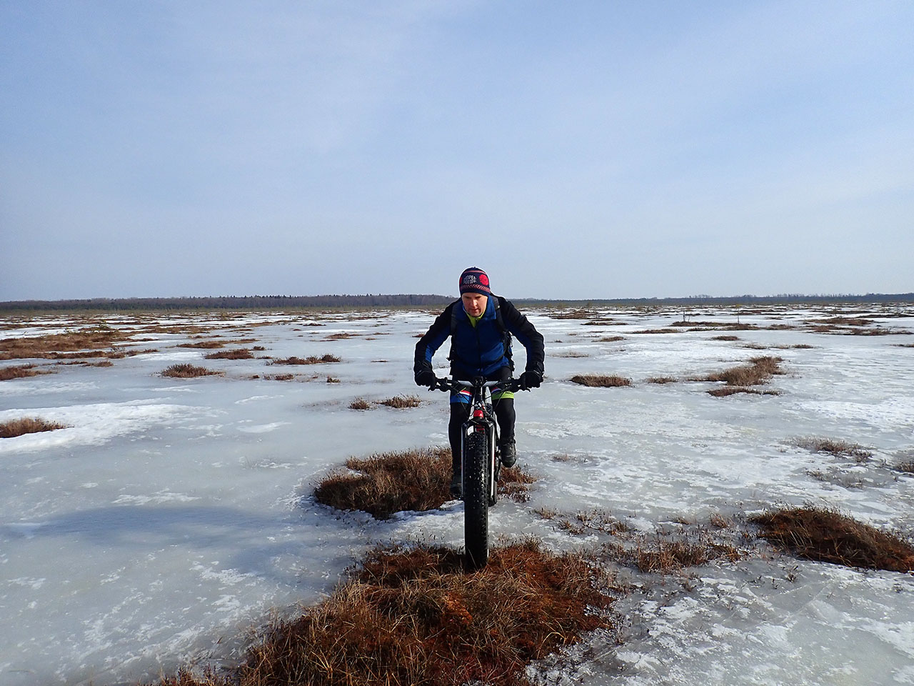 Но все таки расчет на общее время езды по болоту оказался верным и неприятный участок уже был в конце пути, именно тогда, когда появились первые снегоходки.