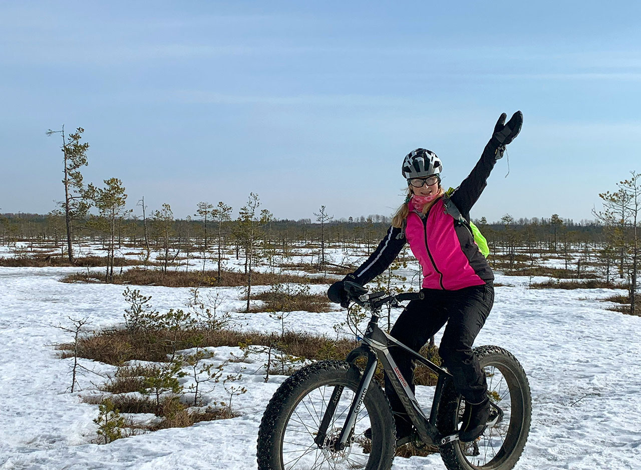 С болота выехали на урочище Лодва. Сколько раз его видела, всегда было красиво там, но в этот день особенно. Снега в лесу еще было по колено, где прокатана колея бублики держало, но было понятно, что через часок уже начнется хороший дрифт даже на таком покрытие. Солнце еще никуда не собиралось укатиться, а +5С уже пришло