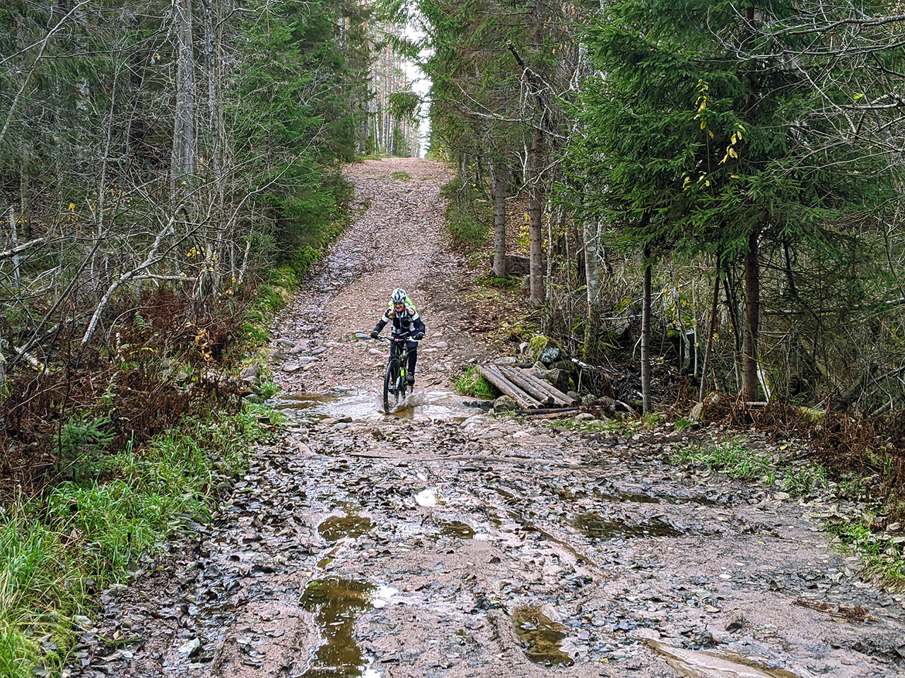 по настоящему :) Это не говорит о том, что там плохо, а о том, что настолько хорошо, что как сладость, просто приелось за бесчисленное количество его посещений. Но тут как раз и пришла маза по еще золотой осени вкусить его прелести, так как лучше прокатиться по медовым дорожкам в погожий будний денек, чем месить грязь где то на югах :) К тому же логистика просто отличная, под выборгскую Ласточку туда-обратно, всего минут 45, да вставать не с петухами, куда уж лучше! :D А самое главное, целых 7 часов на свободе, в смысле Природе, да с любимой подружкой, закончившей гоночный сезон и пожелавшей релаксно поматрасить :D Ради этого я собрала самые удачные нарезки из наших треков, чтобы и посмотреть что было и булки размять интересно. Тобишь первая часть по классике с посещением старой финской усадьбы (я там уже ну очень давно не была), мелкими радиалками к озерам, сейчас они очень чарующи и гламурными приятными петельками по старым аэродромным дорожкам. Вторая же часть настоящая покатушечная, как раньше :) Там самые интересные дорожки были и далеко не все гламурные. Было два участка метров по 30, мокроватых, там разливы от реки в подболотах, попрыгали и ноги почти не удалось замочить :)