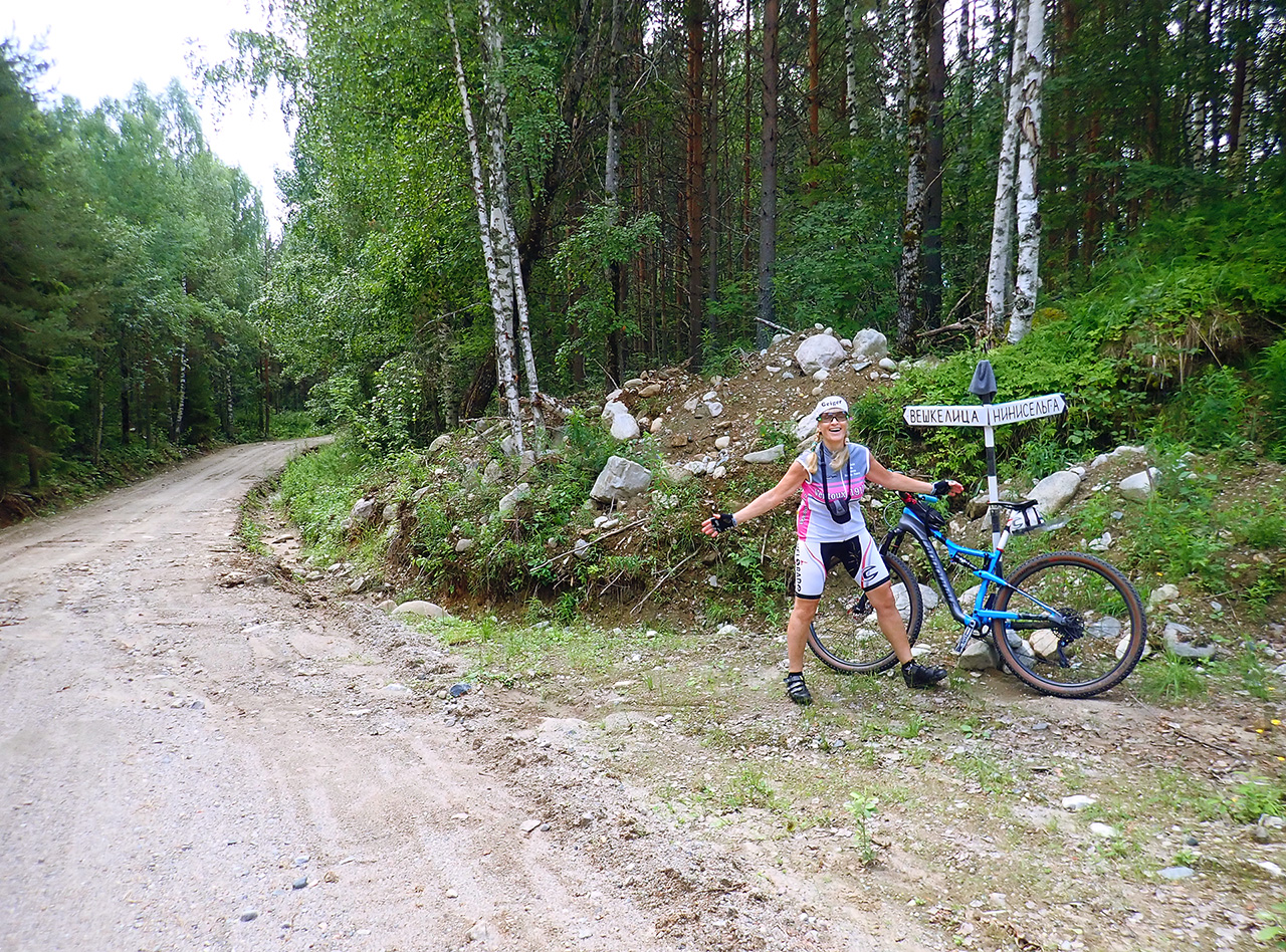 Было очень жарков в этот день, солнце просто обжигало и с высокой влажностью просто нахлобучивало по полной, в горки впиралось очень безрадостно и была очень приятной мысль, что накануне нам с погодой здорово повезло. В лагерь вернулись, там с озера снова дул ветрище и было прохладно, люди в курках ходили, солнце эту сторону озера не очень баловало. Вот такие контрасты были :) В Вешкелице снова остановились у знакомого павильончика с выпечкой и моОчкой с Олонца, затарились на дорогу тем и другим по полной :) Заодно пообщались с подъехавшими велотуристами с Нижнего Новгорода. Половина была на жестких вилках и мешки развешаны у кого вдоль, у кого поперек. Больно это видеть было пятой точке, ехавшей накануне на подвесе налегке :) Посмотрела их маршрут, ехали от Олонца. Иллюзий питать не надо конечно сплошь однозначные дороги для такого вида туризма, с изюмистыми трейловыми пунктирами для гужевого транспорта это уже не тот формат и не те впечатления как для нас. Ну тут каждый на своем опыте выбирает что ему больше нравится :)