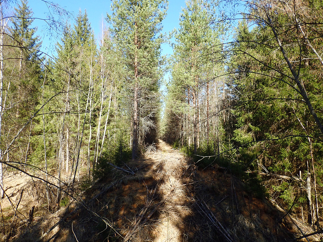 Ну третий раз полюбоваться Вышневолоцким водохранилищем не зазорно. Тем более дороги плотные были, пески не вязли, где они были, все хорошо видно, природа сияет и все вокруг сверкает в солнечных лучах и очень атмосферно. Не буду говорить о вылетающих из кустов откормленных тушах глухарей, там просто беспредел какой то :lol: Вот с такими восторженными настроениями шикарно катилось в глубинный мир тверских деревень. По мне так это самая крутая погода, больше и не надо! А в борах там песков хватает, ждут своего часа в барханы рассыпаться. А жидкие кустики на дорогах ждут когда старые дороги захватить. Пока же все шикарно проезжаемо. Этим я и воспользовалась еще в одной локации на разобранной жд ветке. Не надо было обратно ехать частично радиалкой или использовать еще два лесных варианта, один с бродом, другой сейчас в разливах (эти исключались сразу:))), или тошнить по шоцэ, хотя его тоже пришлось использовать, были места где без него никак. Впечатления конечно яркие. Заброшенные мосты, обрывы на месте где дорога обрывается и на другом берегу продолжается вновь. Очень круто! Думаю в другой сезон такой атмосферы бы не почувствовала.