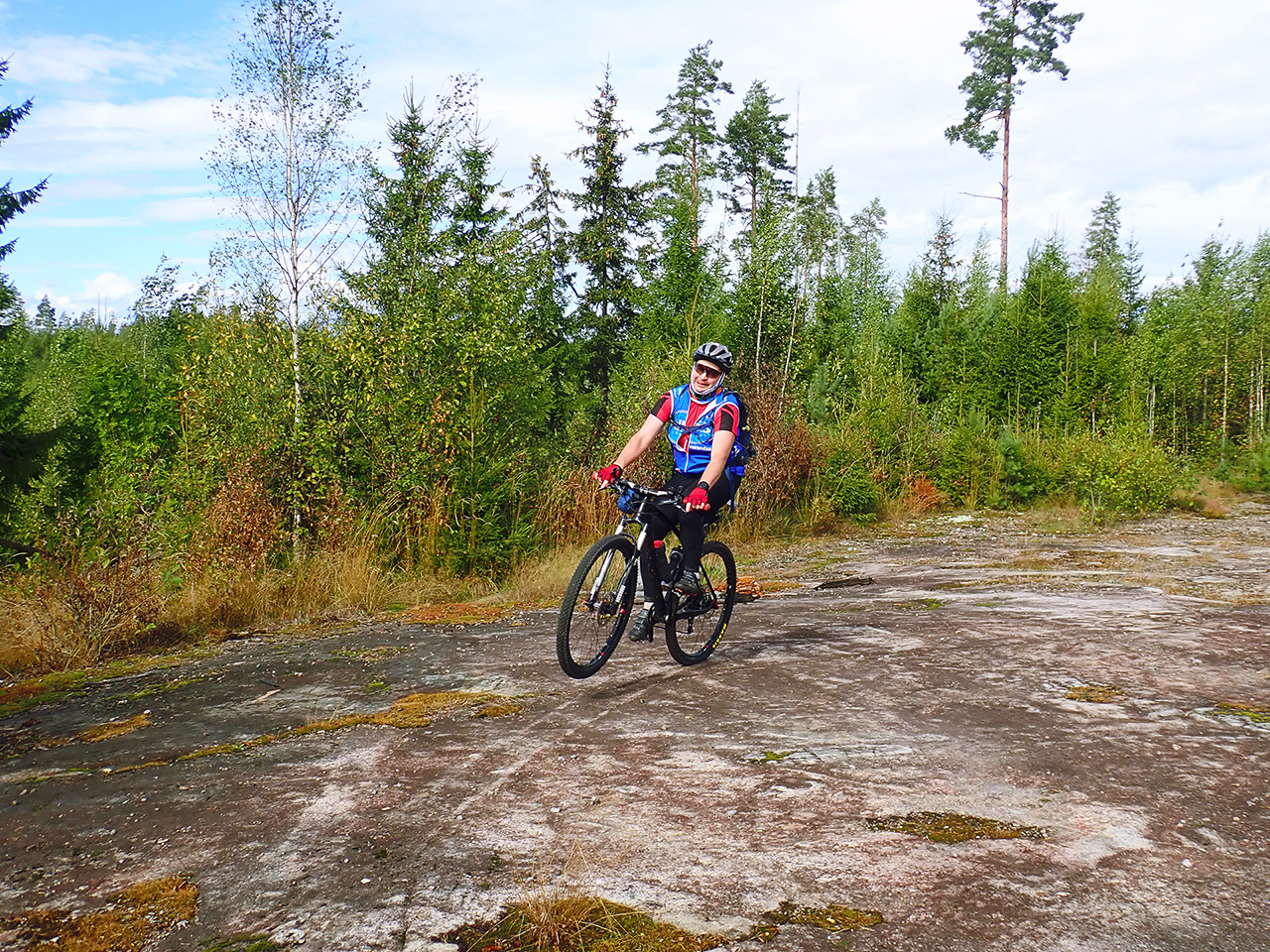 едешь, дороги то сами по себе накатистые, твердые, а полезные горочки прокачивают булки. Да и не так часто там ездишь, так что можно и побаянить, это ж не засиженное мухами Каннельярви :lol: Погода была вполне комфортная, днем +16С, но с высокой влажностью, вечером когда стало прохладно из за этой влажности можно было даже куртку не одевать. Воды лично у меня ушел литр, еды пирожок и два геля, остальное забрасывалась мармеладками на ходу. Так что вполне неплохо получилось. Еще бы лосиных вшей не было, но к счастью их не так много было.