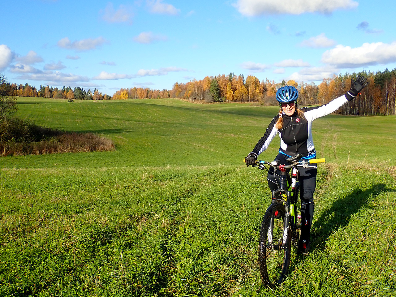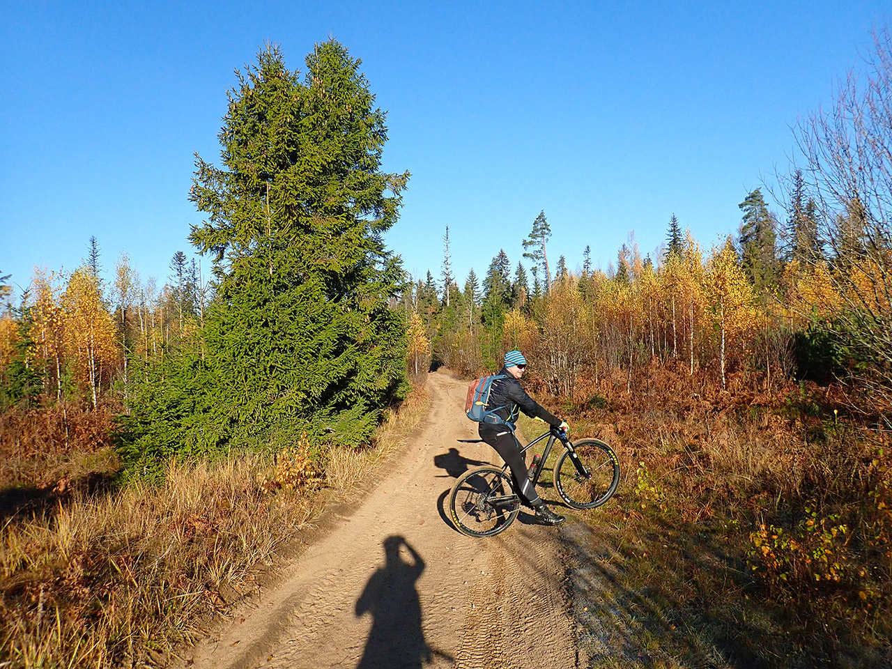 вот на фото просто тепло и такая приятная осень., на самом деле выехали из достаточно прохладного тенистого леса и хоть чуток в себя пришли, организм никак не хочет адаптироваться к переходу на зимнее время :)