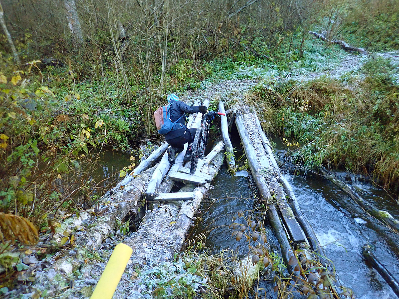 и как вишенка на торте переправа, на тот момент шибко скользкая и стремная, а внизу бурная речка несется