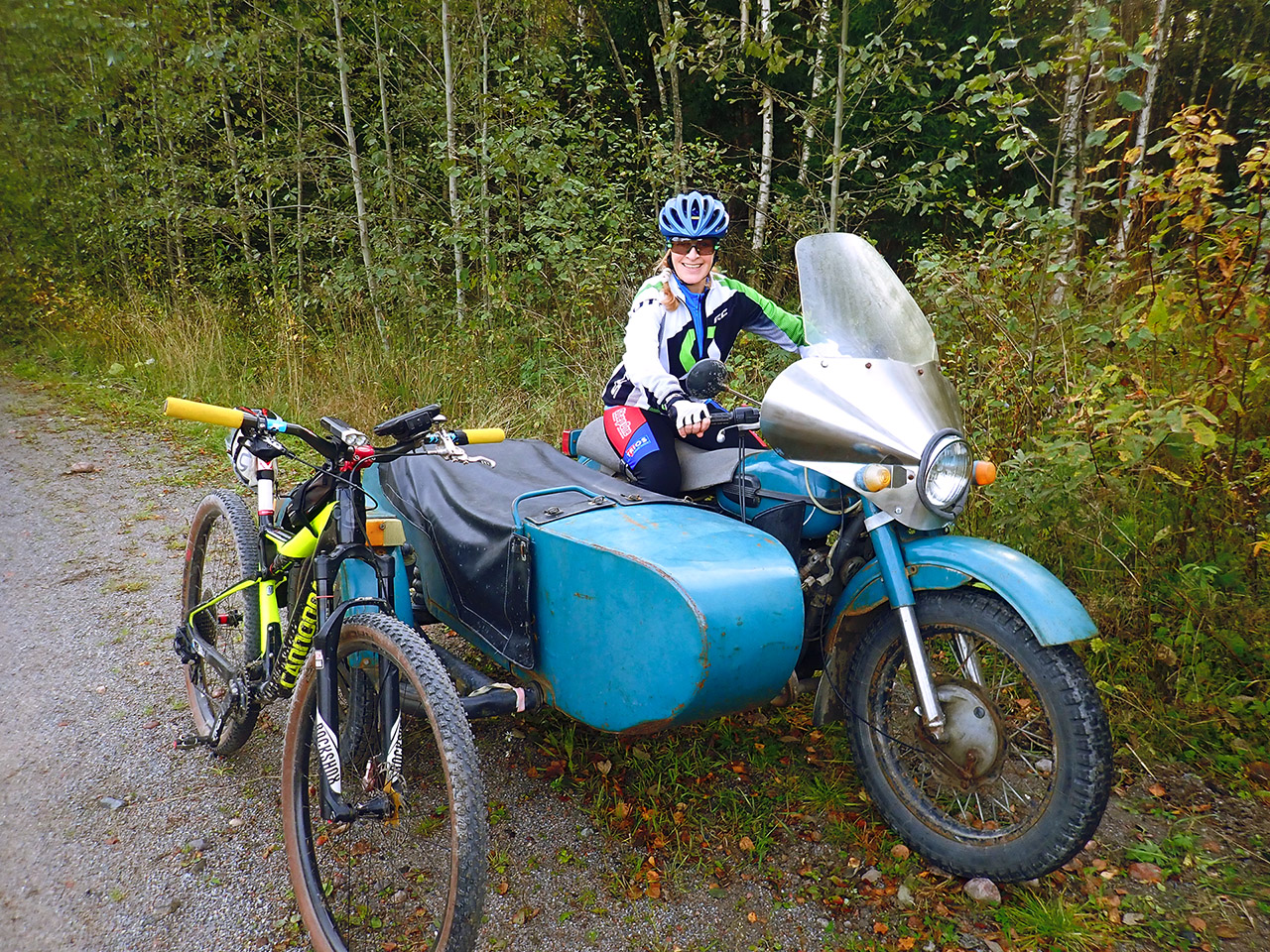 Дальше уже никаких трудностей не было, только накатистые каменистые грунтовки, белые грибы, медвежьи кладки, взлетающие из кустов отожравшиеся глухари и тишина просто пронзительная. Полный отрыв с природой! Счастье есть! :D На солнечном пригорочке перекусили.