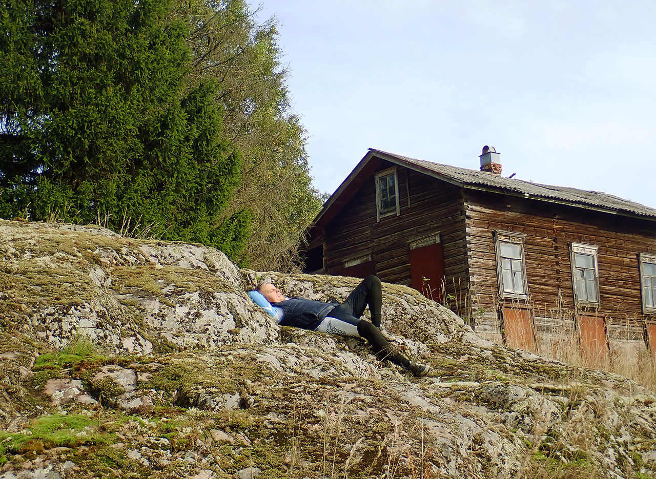 загорали на солнышке на каменных ступенях у известного давно нежилого старого одиночного дома (хутора)