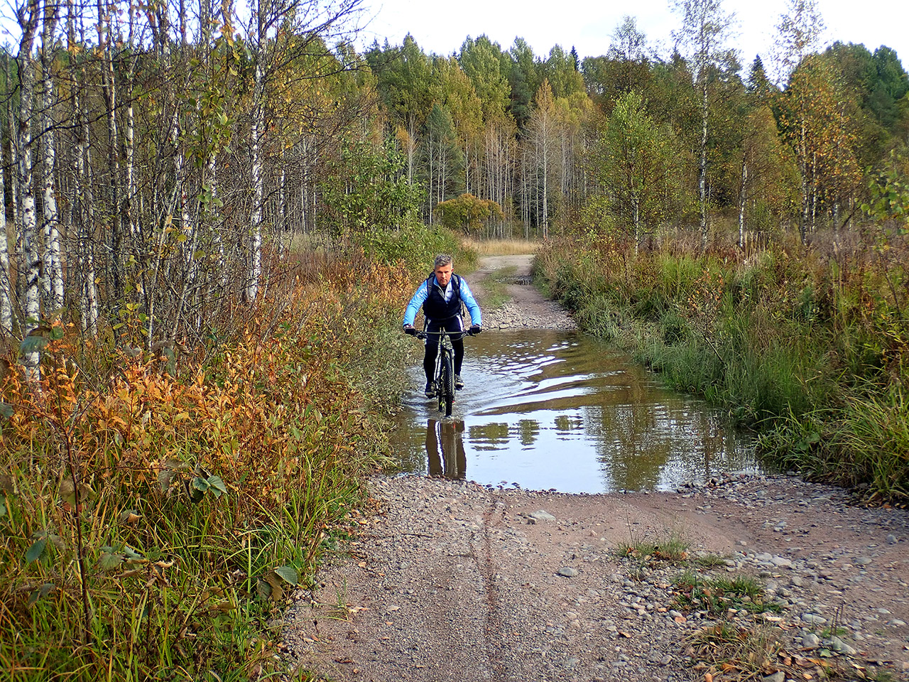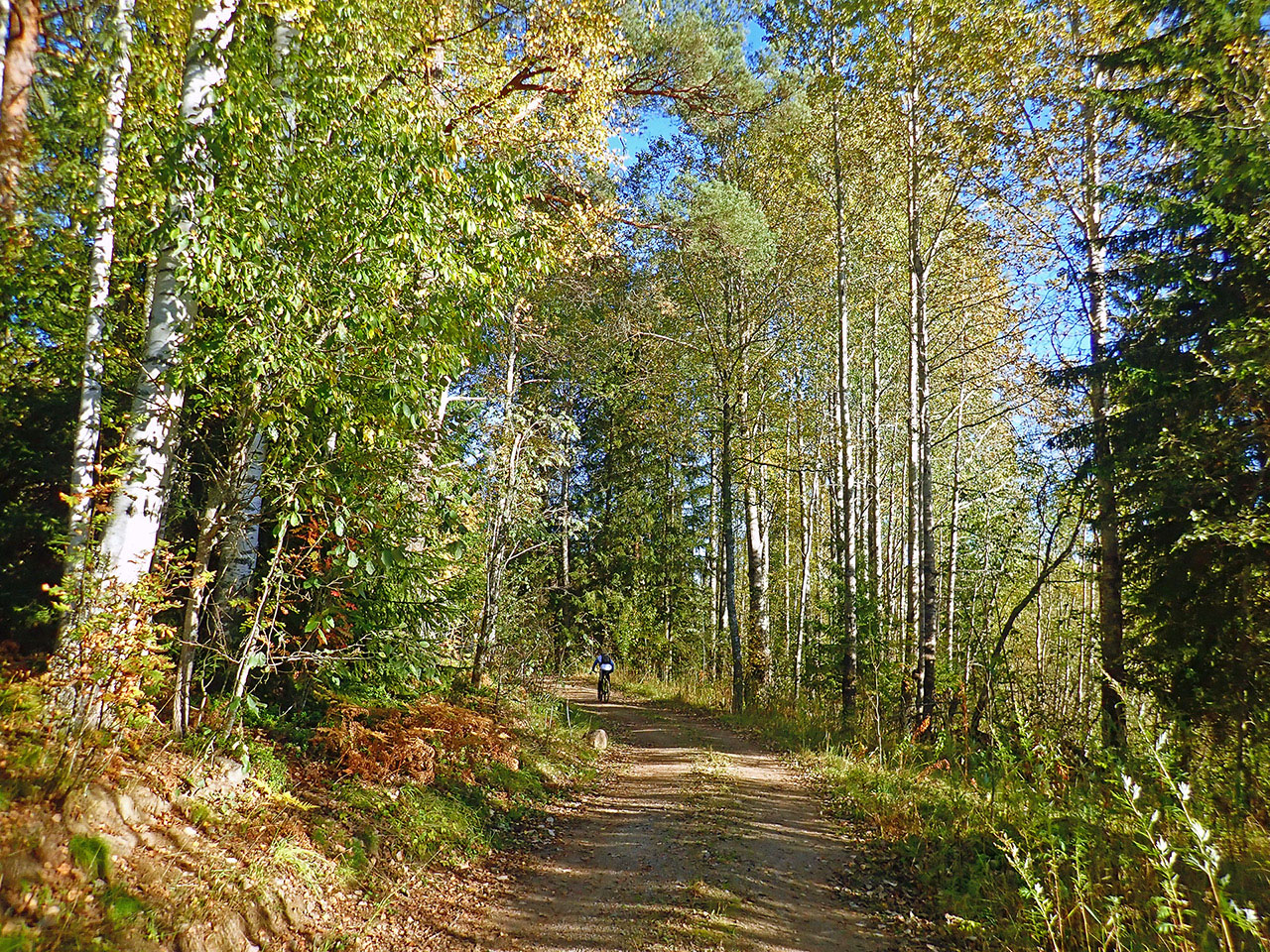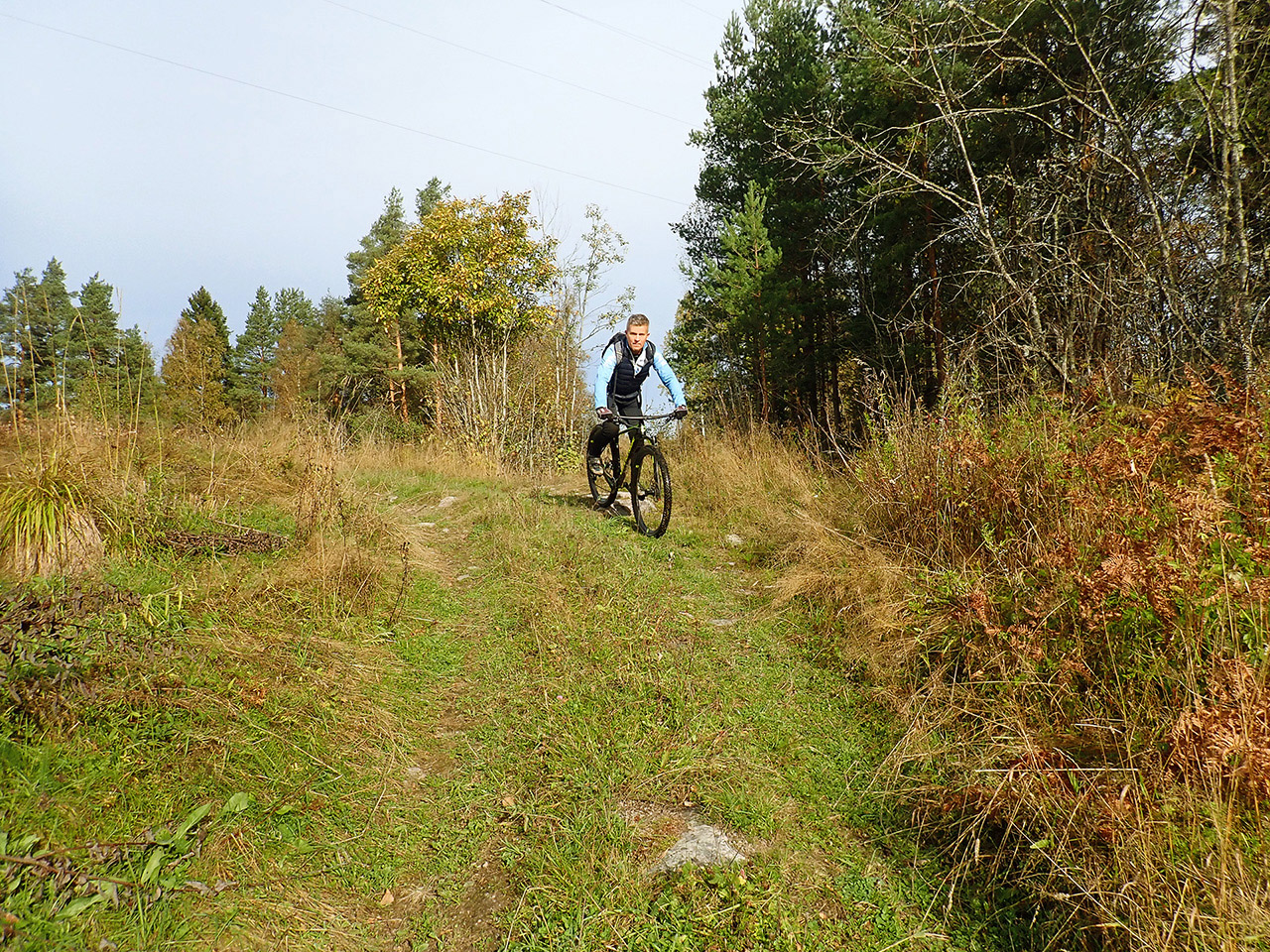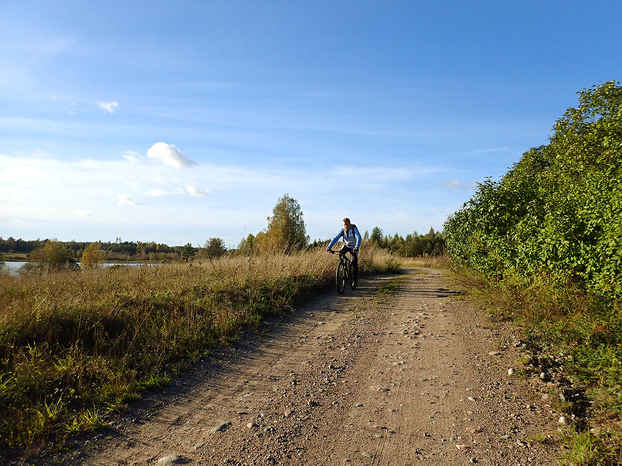 Дальше уже после проселочной дороги была отличная каменистая грунтовка, с приятными спусками и подъемами и природа, хоть и не сосняк, больше смешанный лес и кусты, но при наличии рельефа хоть не унылая