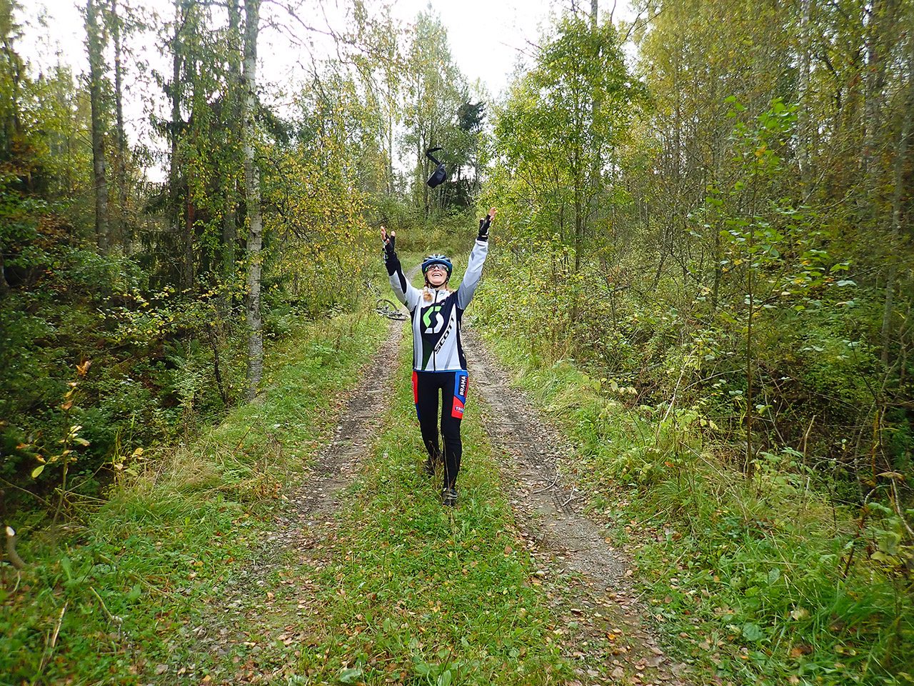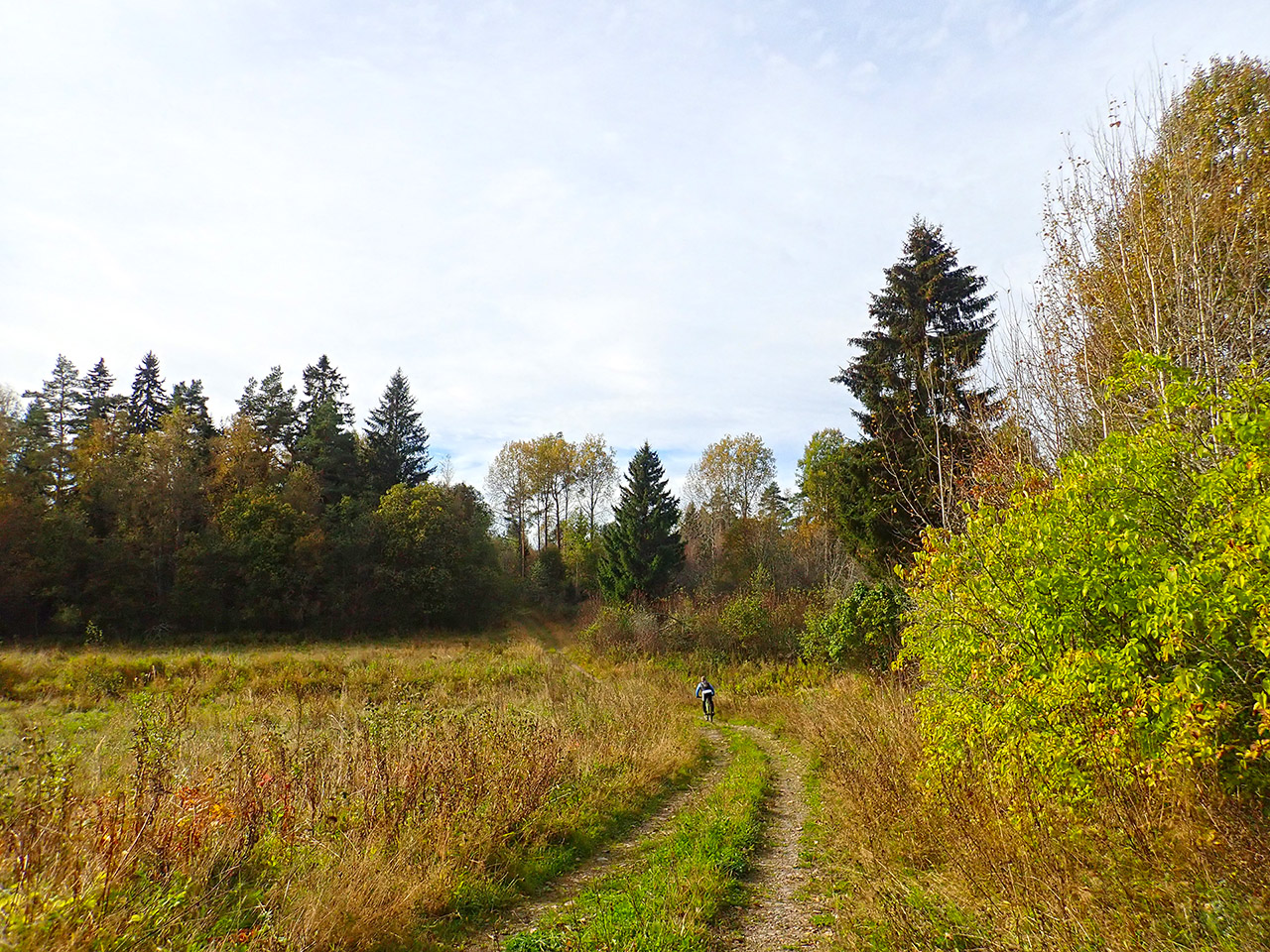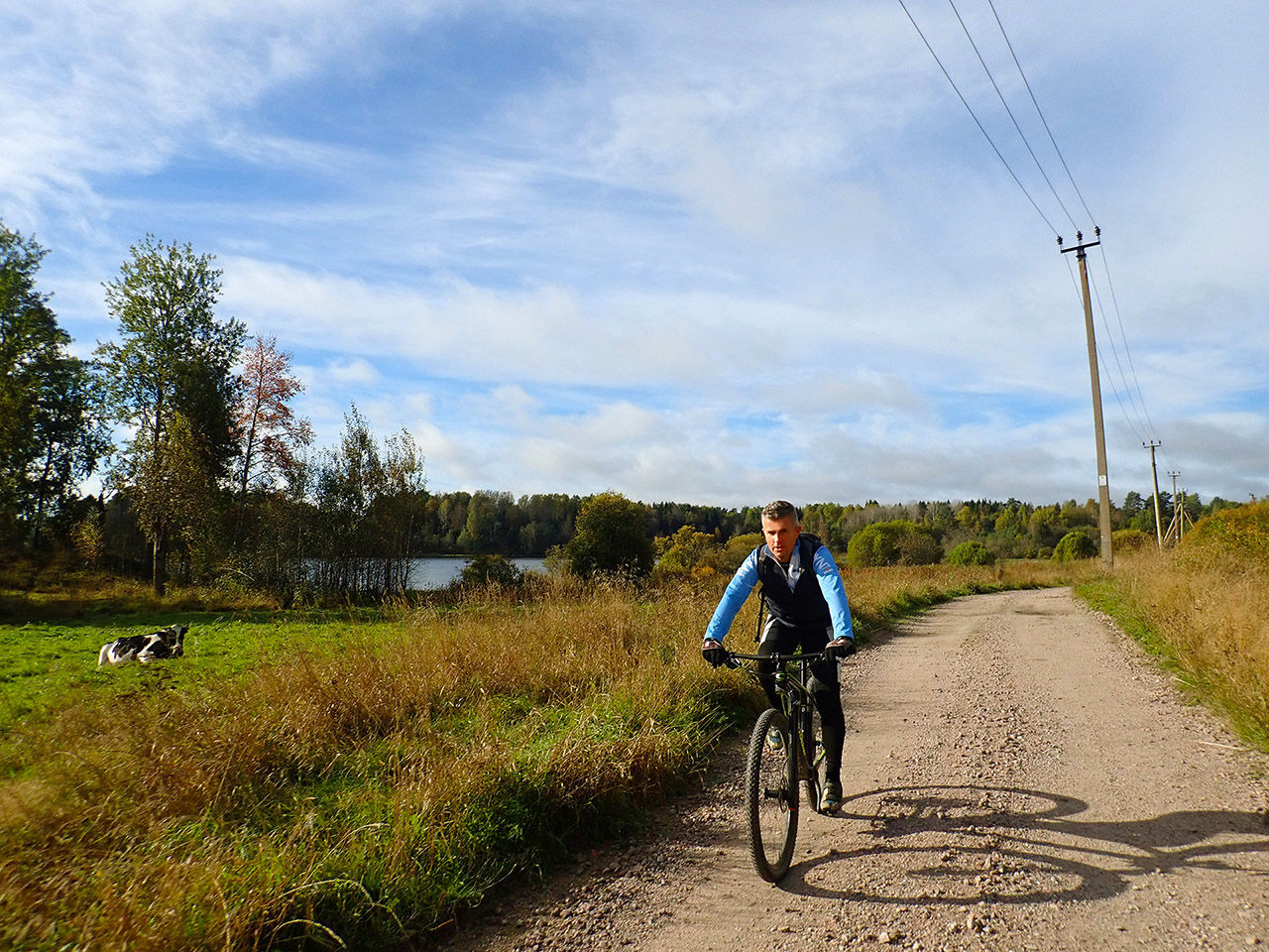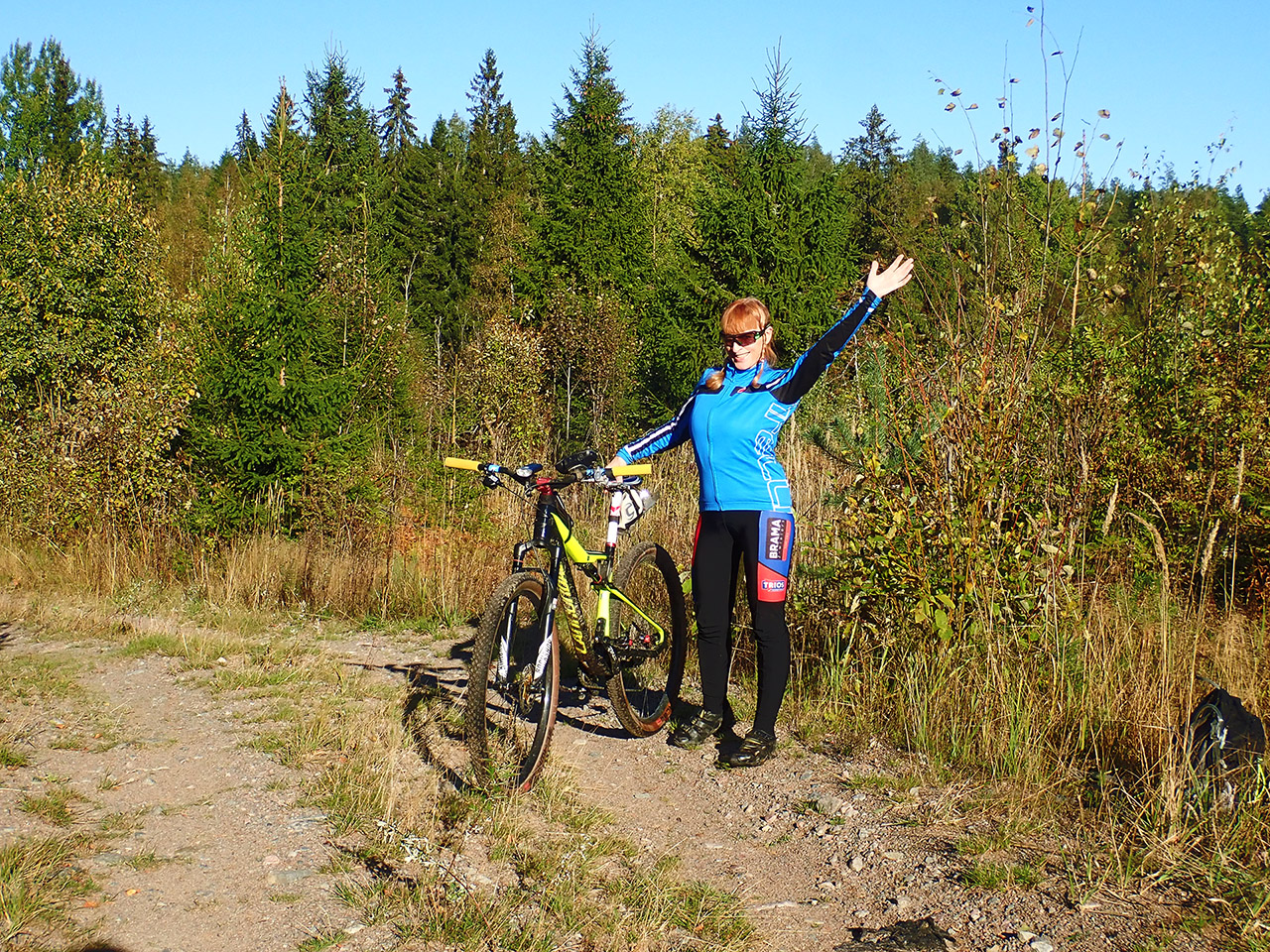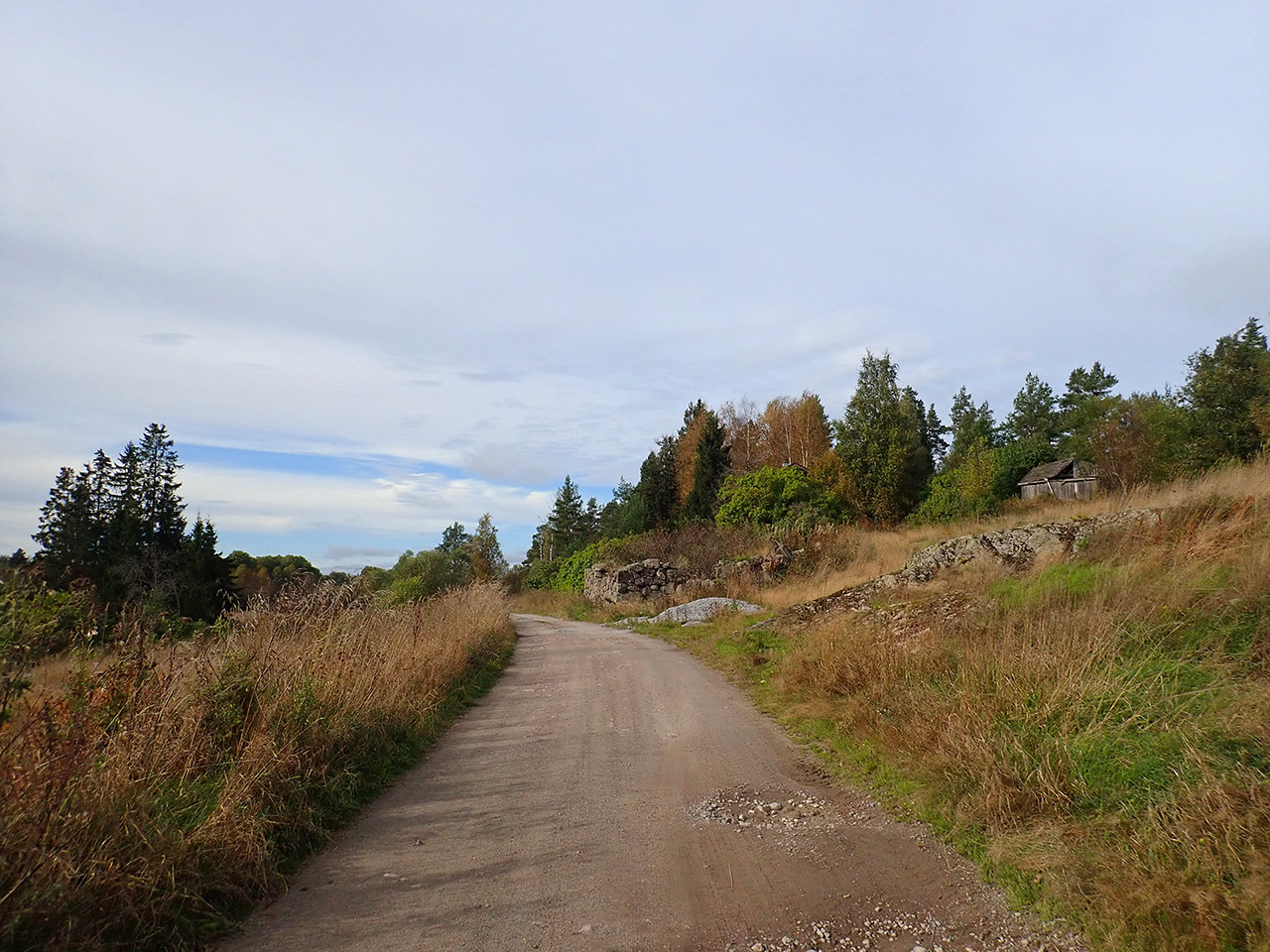 Дальше уже после проселочной дороги была отличная каменистая грунтовка, с приятными спусками и подъемами и природа, хоть и не сосняк, больше смешанный лес и кусты, но при наличии рельефа хоть не унылая