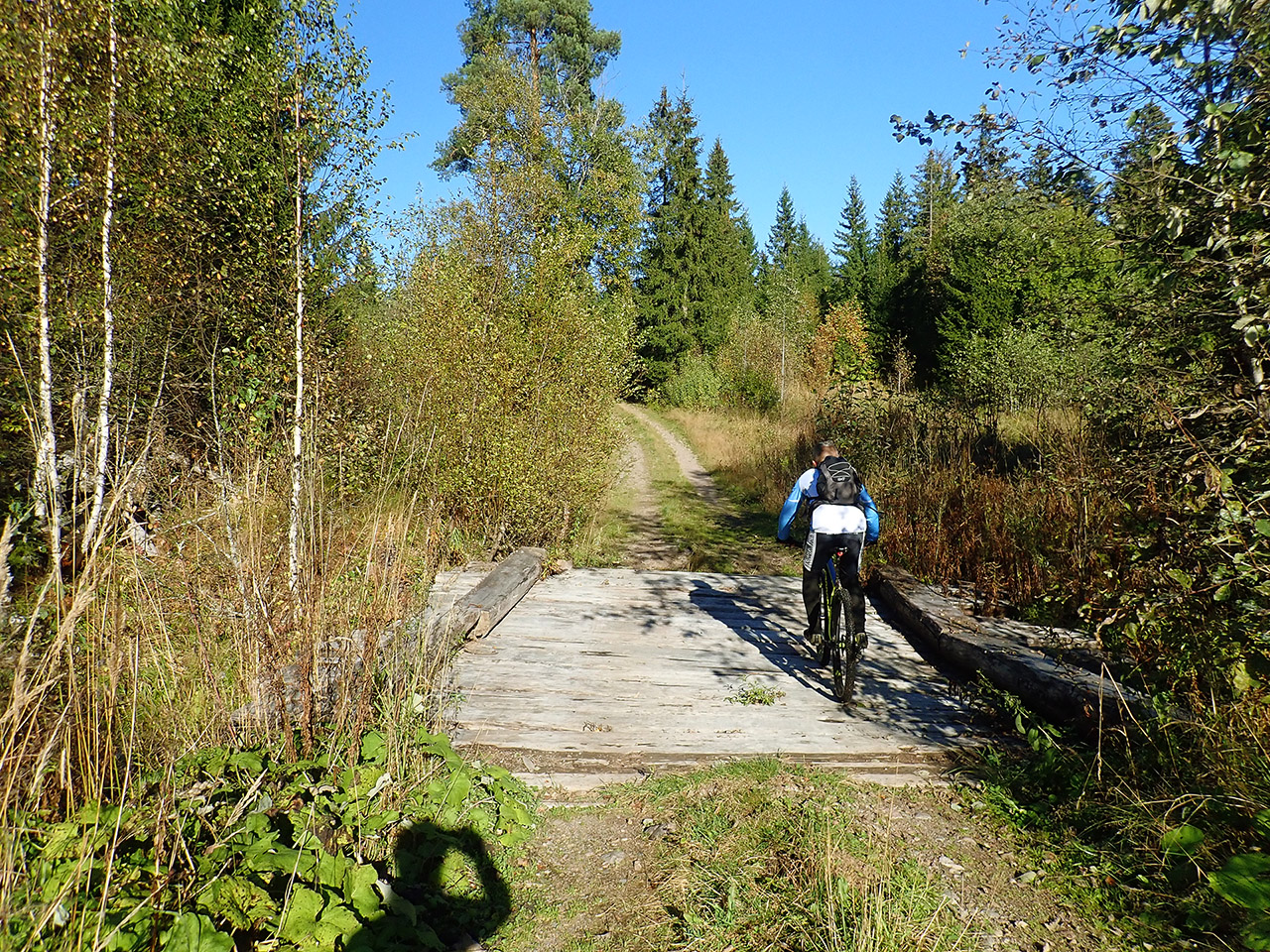 У старого моста было так атмосферно, что минут 15 там провели там, радуясь задавшемуся началу дня. Остатки мельницы искать не стали, лазить по ноголомным берегам небыли ни времени, ни желания, нам бы педали крутить :)