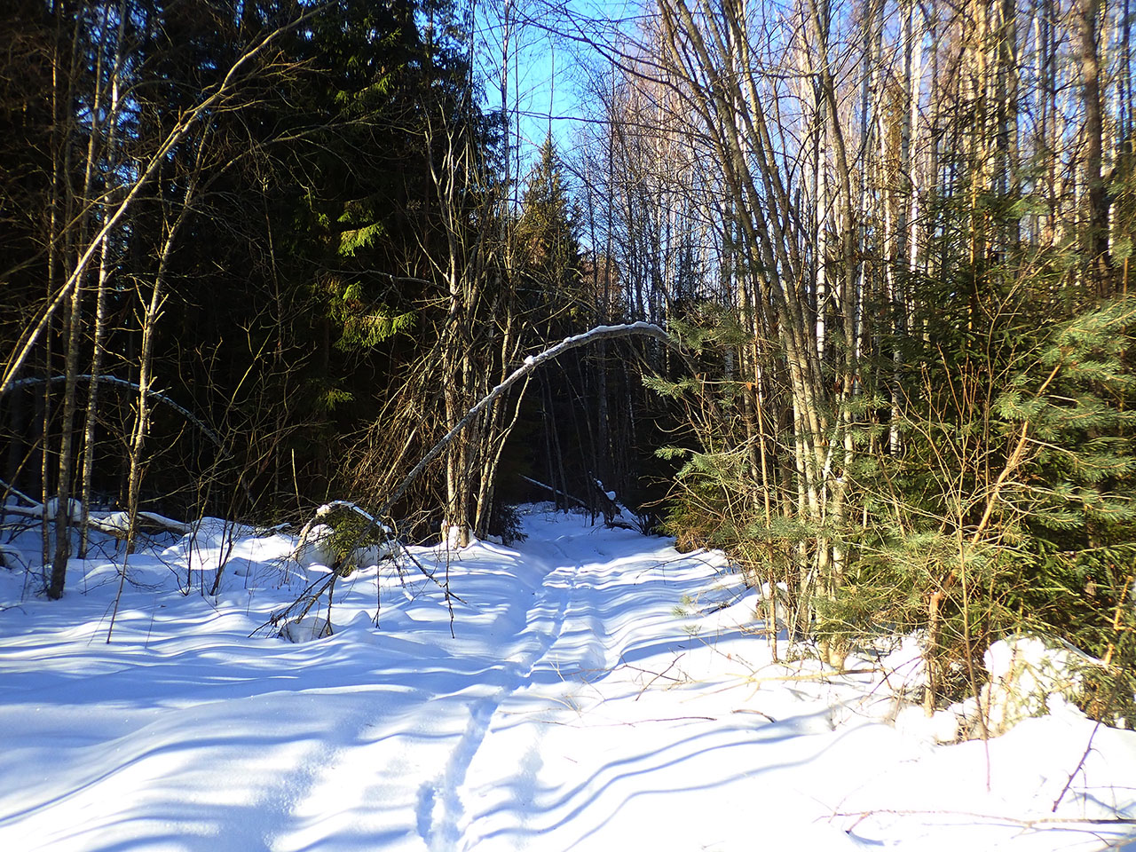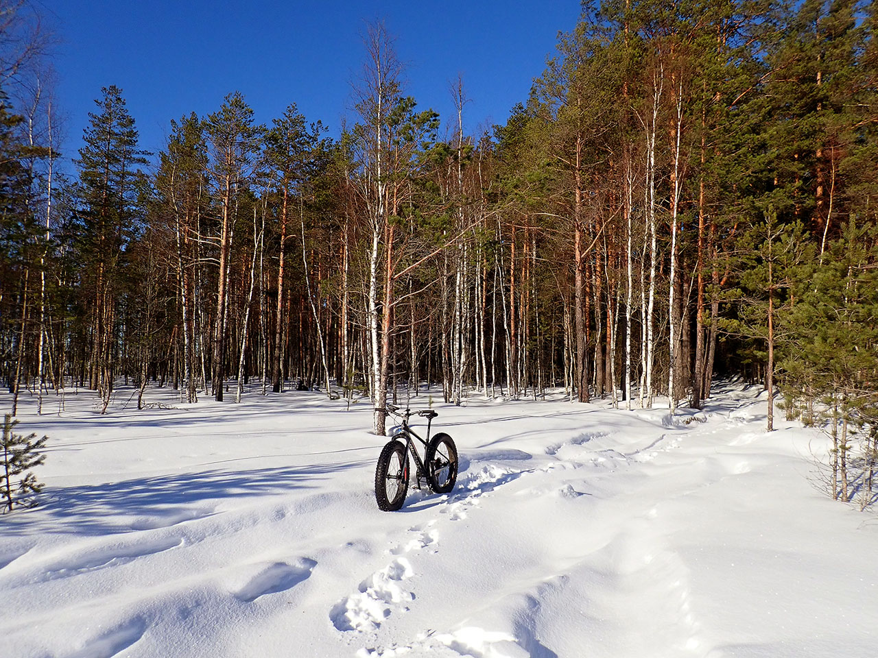 Так как места знакомые и дороги одни и те же за годы катаний, с разнице лишь по сезону и погоде, то на этот день было больше похоже на февраль пятилетней давности, разве что тогда подсыпавший свежий снег на старых, но держащих велосипед дорогах был мягкий (тогда не было резких перепадов на оттепель), а в этот раз с корочкой, похрустывающей даже на проезженных дорогах. Там где приходилось ехать по старым снегоходкам, читающимся под целиной, то потеть приходилось изрядно, разрезая верхний слой наста со снежком тяжеловатым под ним, пульс зашкаливал изрядно. Дрищам там делать точно было б нечего, бублики еще цеплялись с усилием за жизнь