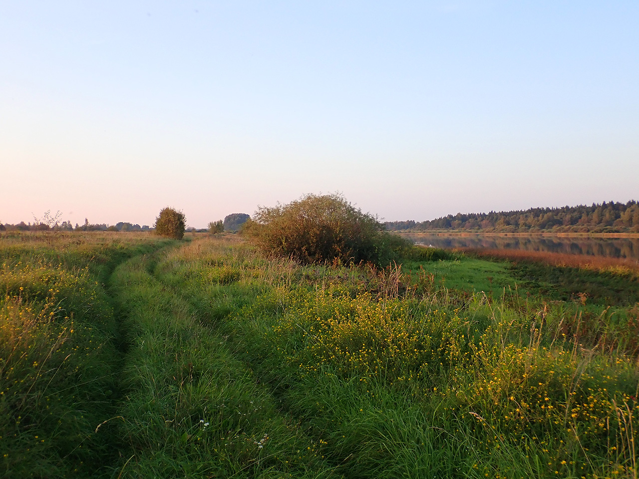 это всегда Восторг! Удалось проехаться даже вдоль Великой, по зарастающей травой дороге, где нет заселенки, что редкая удача. Река там ровная и спокойная. Вода как зеркало, только разве иногда вОды рябью побеспокоит вздорная рыбешка, требующая вечернего клева