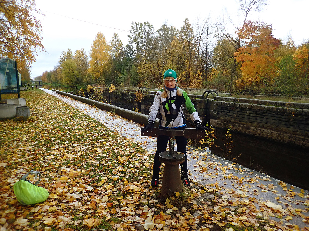 вдоль канала и стенды информационные поставили, можно листвой пошуршать и старым железом покрутить :)